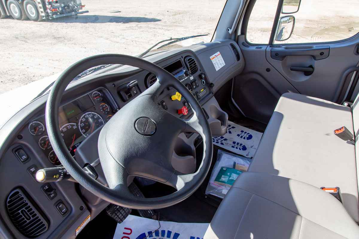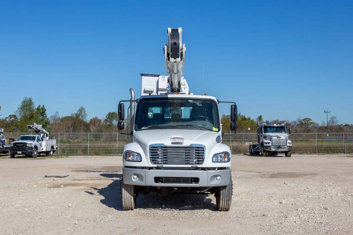 •Furnish and install mounting hardware, PTO, and pump • Install VERSALIFT VN-555-MHI • Furnish and install hydraulic diagnostic test ports • Furnish and install body and accessories • Furnish and install slope indicators • Furnish and install park brake interlock • Furnish and install backup alarm • Furnish and install a 4-corner LED amber strobe system • Furnish and install ICC rear bumper • Furnish and install a pintle plate with D-ring each side • Furnish and install combo pintle/hitch with 2 5/16” ball • Furnish and install a 7 prong trailer receptacle • Furnish and install mud flaps • Furnish and install travel height decal in the cab • Furnish and install a compartment top access step • Furnish and install a two-step platform access step • Furnish and install rubber bumper for hotstick door • Paint body to match chassis • Paint treadplate floor and compartment tops with black no-skid • Furnish four (4) 24” X 24” X 2” outrigger pads • Furnish two (2) rubber wheel chocks • Furnish fire extinguisher and 3-piece triangle reflector kit • Test ride completed unit for 1 hour • Test and Certify per ANSI A92.2