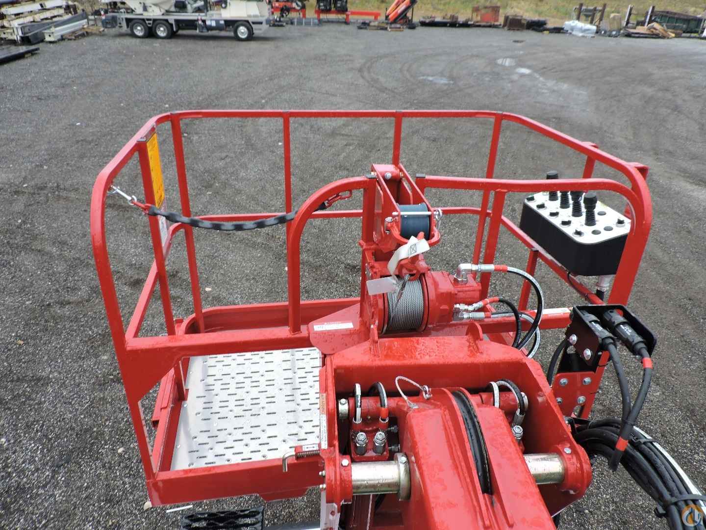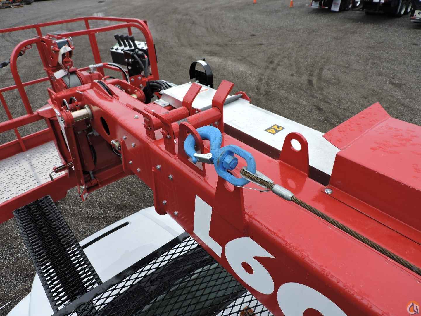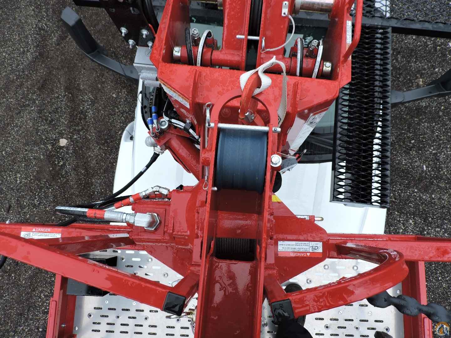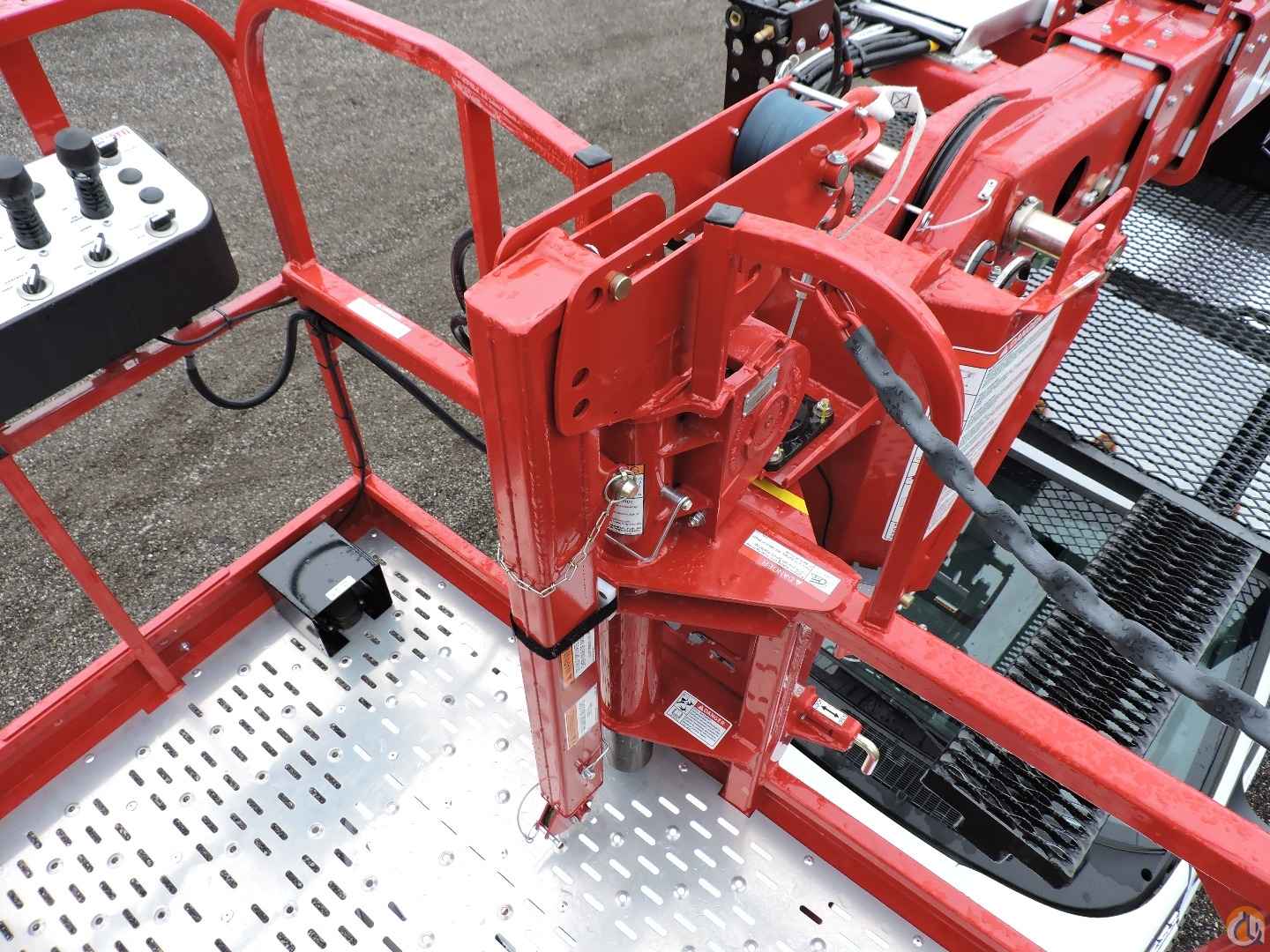 - Platform mounted jib with hydraulic winch drum in floor with 500 lb. capacity. Jib stows in platform