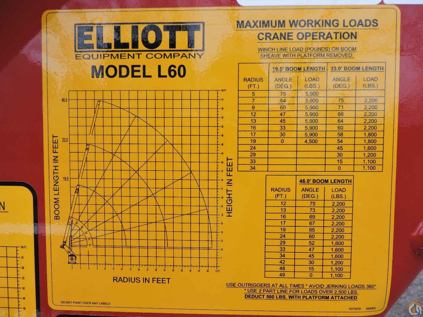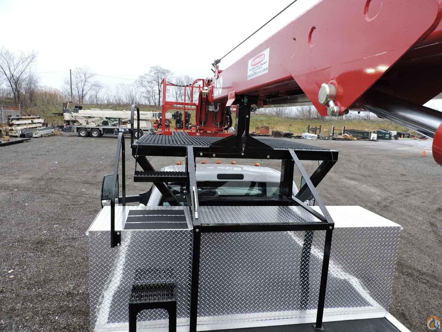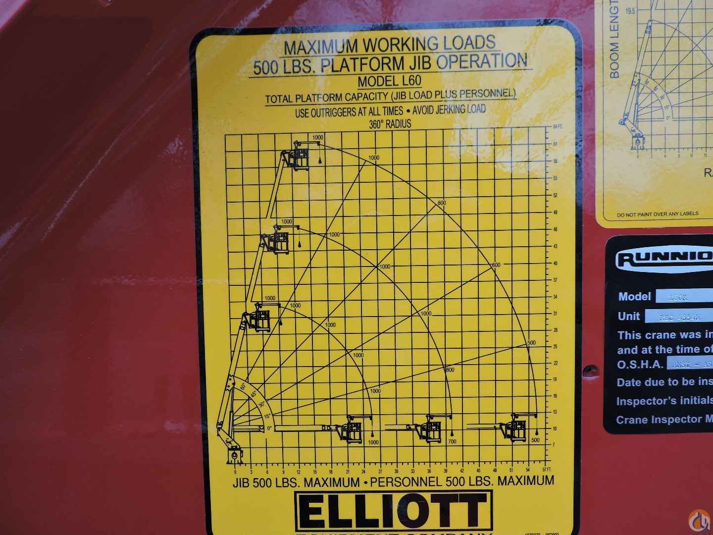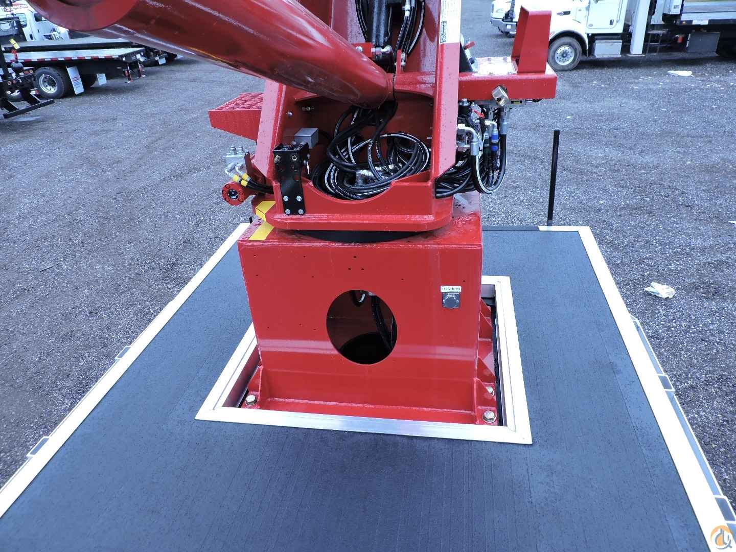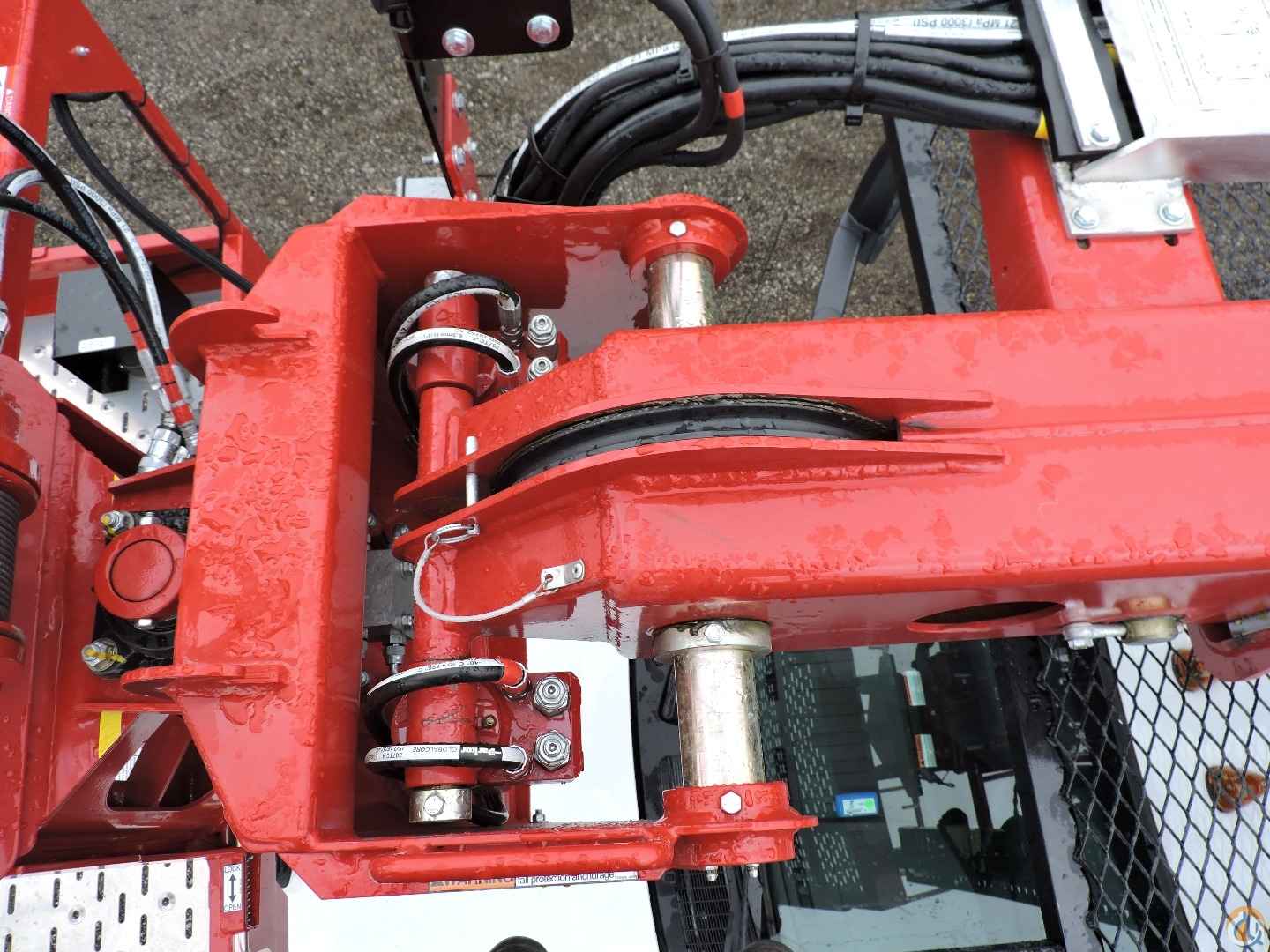 - Platform mounted jib with hydraulic winch drum in floor with 500 lb. capacity. Jib stows in platform