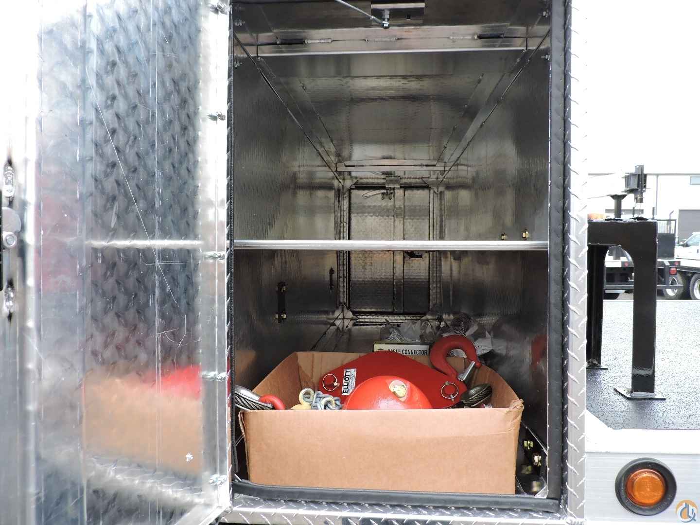 - 5,900 Lbs. winch w/anti-two block switch, horn, two-part hook & 3/8” cable & retainer lug