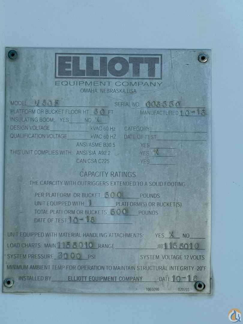 2016 ELLIOTT HI-REACH MODEL V60F MOUNTED ON A 2016 19,500 GVWR FORD F-550 300HP CHASSIS WITH AUTOMATIC TRANSMISSION EQUIPPED WITH THE FOLLOWING OPTIONAL EQUIPMENT: