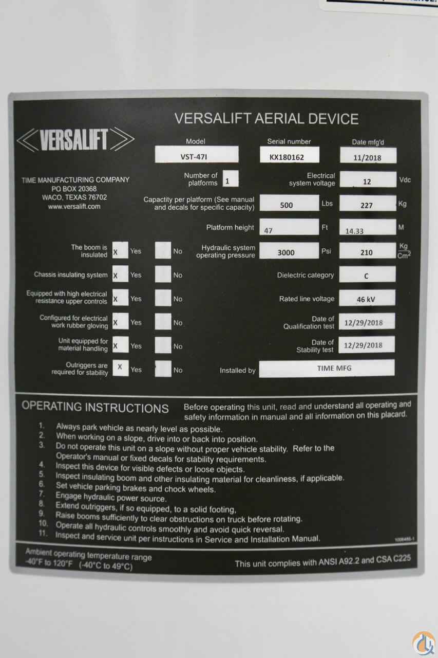 2018 Versalift VST-47-I Crane for Rent in Olathe Kansas | Crane Network
