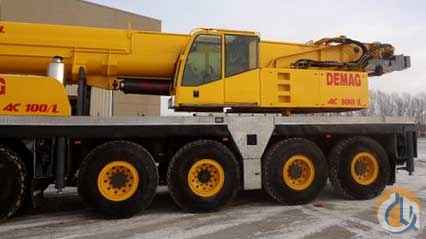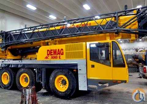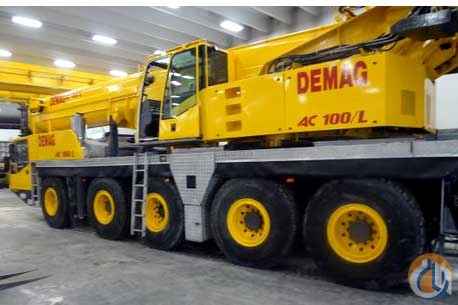 <p>FOR SALE: (1) DEMAG AC 100/L YEAR 2000 LOWER HRS 4512 UPPER HR 6012 20.5 X 25 TIRES BLOCK AMD BALL AIR COND UPPER AND LOWER SWING AROUND JIB 30.2 X 55.8 VERY NICE CLEAN CRANE. WITH 2 AXELE BOOM DOLLEY SISTER HOOK BLOCK</p>