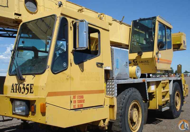<p style="text-align: justify;"><span style="font-size: medium;"><strong>1996 Grove AT 635E, </strong>35 Ton Base Rating, 91 Ft. 4 section full power boom,43 Ft. lattice jib with pull out, Front Outrigger, 2 winches, LMI, Drives from upper or lower cab, 35 ton hook block, Hook Ball, Cummins 8.3 Liter Diesel Engine, 8 Speed Automatic Transmission, 4X4 Drive, 2 & 4 wheel steer with independent rear steer, Excellent Condition, <span style="text-decoration: underline;">new</span> automatic transmission installed 4-11 ($38,000), have all service records, parts and service manuals.<strong> </strong></span></p> <p style="text-align: justify;"> </p> <p style="text-align: center;"><span style="font-size: xx-large;"><strong>SOLD</strong></span></p>