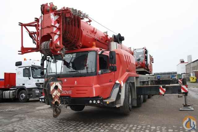 2009 Grove GMK 5115 / 115 ton : Mercedes diesel with 51,020 Kilometers and 7,400 hours on upper; 197' main boom; 56' swing away with hydraulic offset; One winch; Full function LMI set to 85%; 10X6X10 drive; 16:00 R 25 tires in excellent condition with spare rim; English manuals Telma brake; A/C in both cabs; 3 sheave block, 1 sheave block and ball.