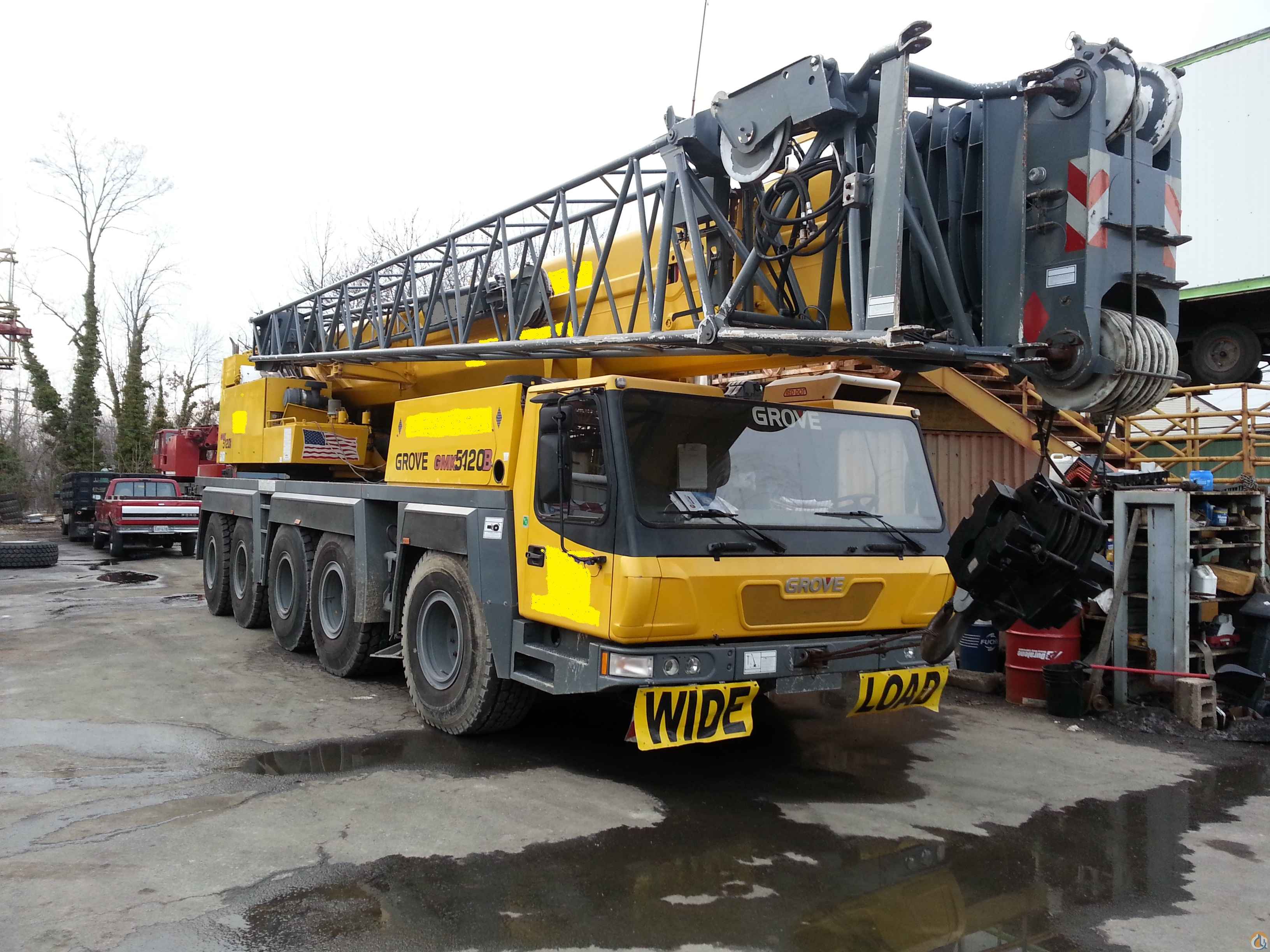 2005 Grove GMK5120B, 120 Ton, 10x8x10 Carrier, Mercedes Engines, A/C in both cabs, 167' Boom, 59' Bi-Fold with (2) 26' Inserts, Dolly Prep, Auxiliary Hoist/ Boom Head Sheave, 20.5x25 Tires (80%), 68,300 Lbs Cwt, 3 Sheave Block and Ball, 72,309 Kilometers and 7,328 hours on the upper. Crane is ready to go to work.