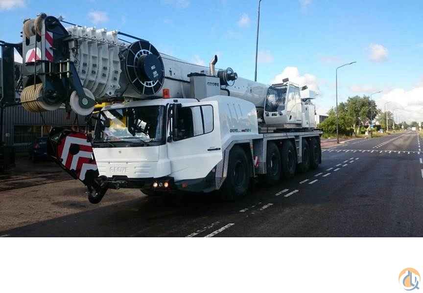 165 ton All Terrain Crane, 197ft of Main Boom, 59ft bi-fold swing-away, hydraulically offset, Mercedes upper and lower, A/C in both cabs, rooster sheave, 197ft 6 section boom, anti-two block system, auxiliary winch, 88400lbs counterweight, engine independent diesel cab heater, 5 sheave and single sheave block included, counterweight removal device, auxiliary boom nose, drive is 10x8x10,hot weather package, new 20.5 tires, EKS 5 LMI system, outrigger pad load indicator on carrier outrigger control panels and in superstructure, crane currently has 8,800 kilometers and 2,528 hours on the upper, crane is located in Baltimore currently, new Grove standard paint, crane comes with a 2 axle Nelson boom dolly ready to go to work. $980,000.