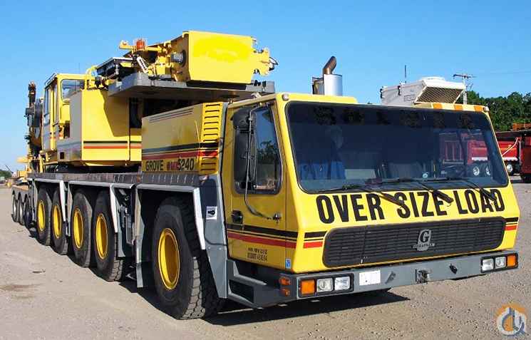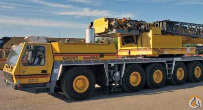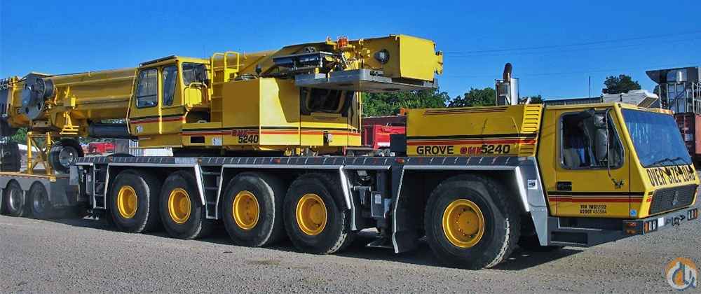 2002 Grove GMK5240 All Terrain Crane, 240-Ton Capacity, 44'-197' 6-Section Boom, 43'-72' Bi-Fold Jib w/ Hydraulic Luffing, (2) 26’ Jib Inserts for Total of 125’ Jib, 154,300# Counterweight, Cummins Diesel Engine Up & Down, Allison Automatic Transmission, 20.5 Wheels & Tires, Main & Auxiliary Hoist, 125-Ton 5-Sheave Hook Block, Headache Ball, 3-Axle Dolly.