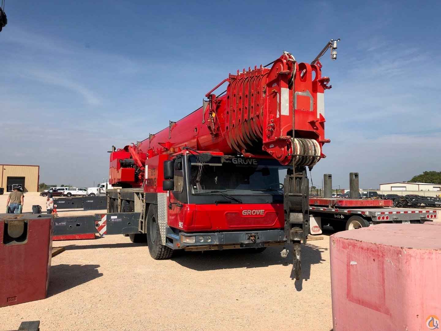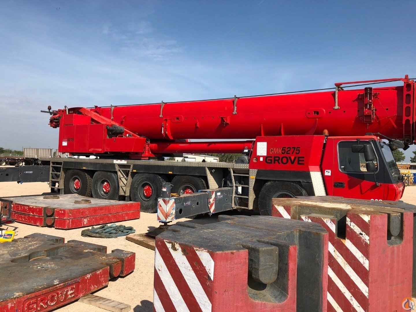2009 MODEL GROVE GMK 5275, 223' MAIN BOOM, 69' HYD JIB, 1 WINCH, 1 & 3 SHEAVE HOOK BLOCKS, HYD OIL COOLERS, EKS 5 LMI, FULL COUNTERWEIGHT, MERCEDES UPPER & LOWER, 10X8X10 DRIVE, 48,900 KM, ALLISION TRANSMISSION, 1600R25 TIRES, AC UPPER & LOWER, AUTO LUBE UPPER & LOWER, BOOM FLOAT KIT, O.S.H.A. CERTIFIED,