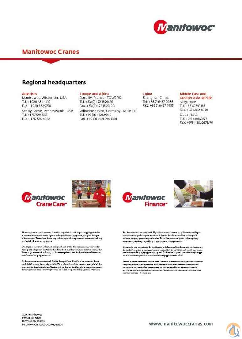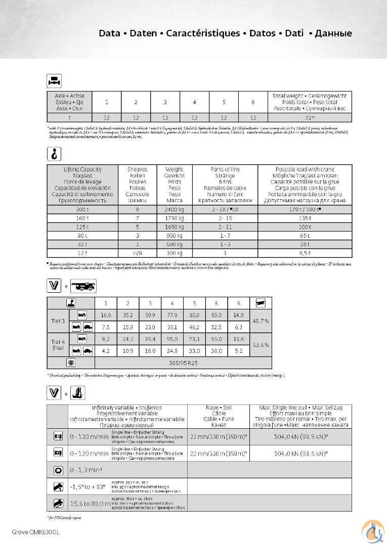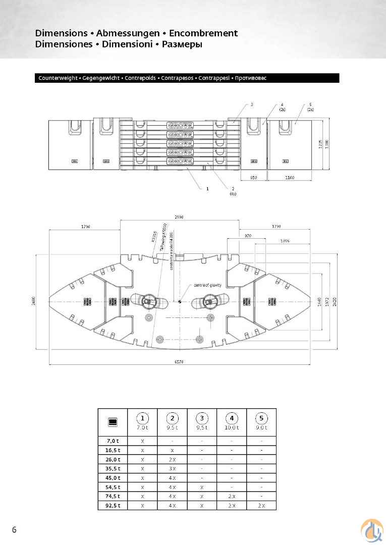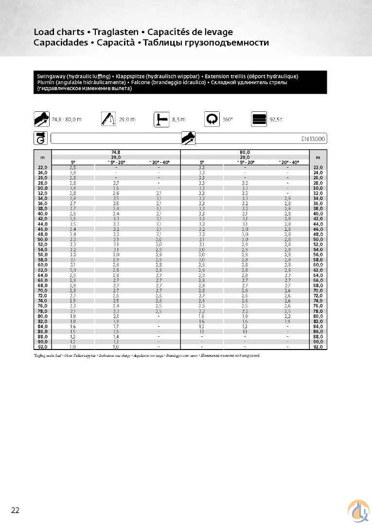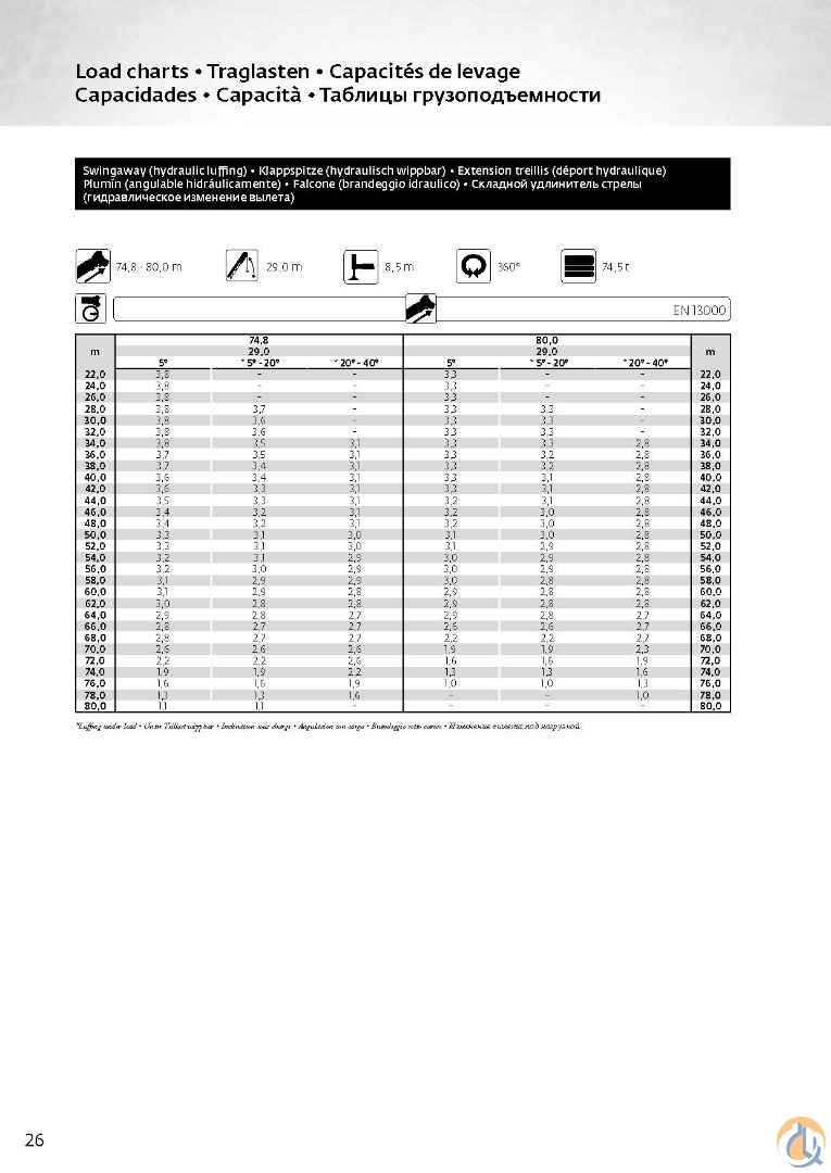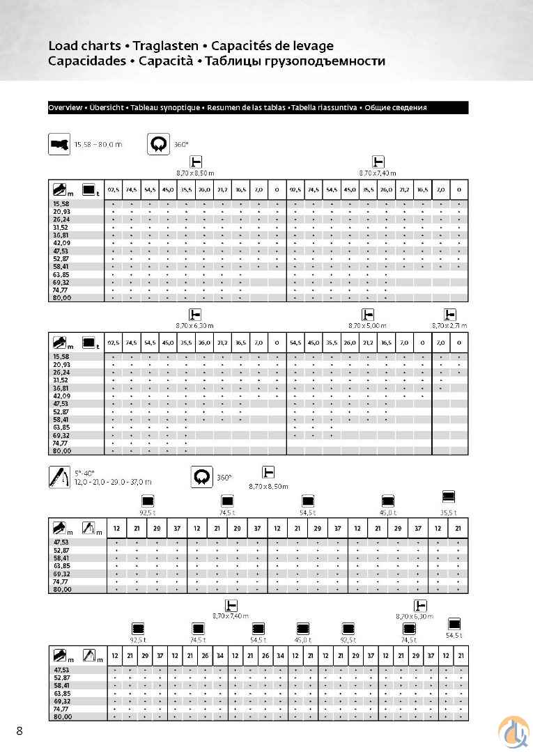 Plenty of accessories for all your lifting needs!! Includes 92.5t Counterweights: Base Plate 7t Plate 9.5t Plate 9.5t Plate 9.5t Plate 9.5t Plate 9.5t Inner Wing weight 10t Inner Wing weight 10t Outer wing Weight 9t Outer wing Weight 9t Auxiliary Boom Nose, Auxiliary Winch, Spare Main winch rope Hookblocks-9 Sheave, 3 Sheave, 1 Sheave, Headache Ball Top Deck has 11,234hrs and Bottom Deck 4,666hrs
