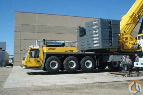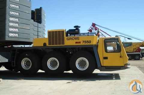 GROVE GMK 7550 550 TON ALL TERRAIN CRANE SERIAL 74508022, EQUIPPED WITH 197' 5 - SECTION BOOM, 240' LUFFING JIB, 230 FIXED JIB. MEGA WING LIFT SYSTEM, A /C IN BOTH CABS, 150 TON QR BLOCK, 80 TON QR BLOCK, 30 TON SINGLE SHEAVE BLOCK, 1 BALL, NEW NELSON BOOM LUNCH TRAILER, NEW BRIDGESTONE 20.5 X 25 TIRES, 1 SPARE TIRE AND WHEEL ALL ALUMINUM RIM,S ADAPTOR FOR HEAVEY DUTY JIB PIN ON REAR BUMPER, 1 ADDITIONAL 6 - METER JIB INCERT, 2- ADDITIONAL SHEAVE IN BOOM NOSE, 14 X 8 X 14 DRIVE / STEER CONFIGURATION.
