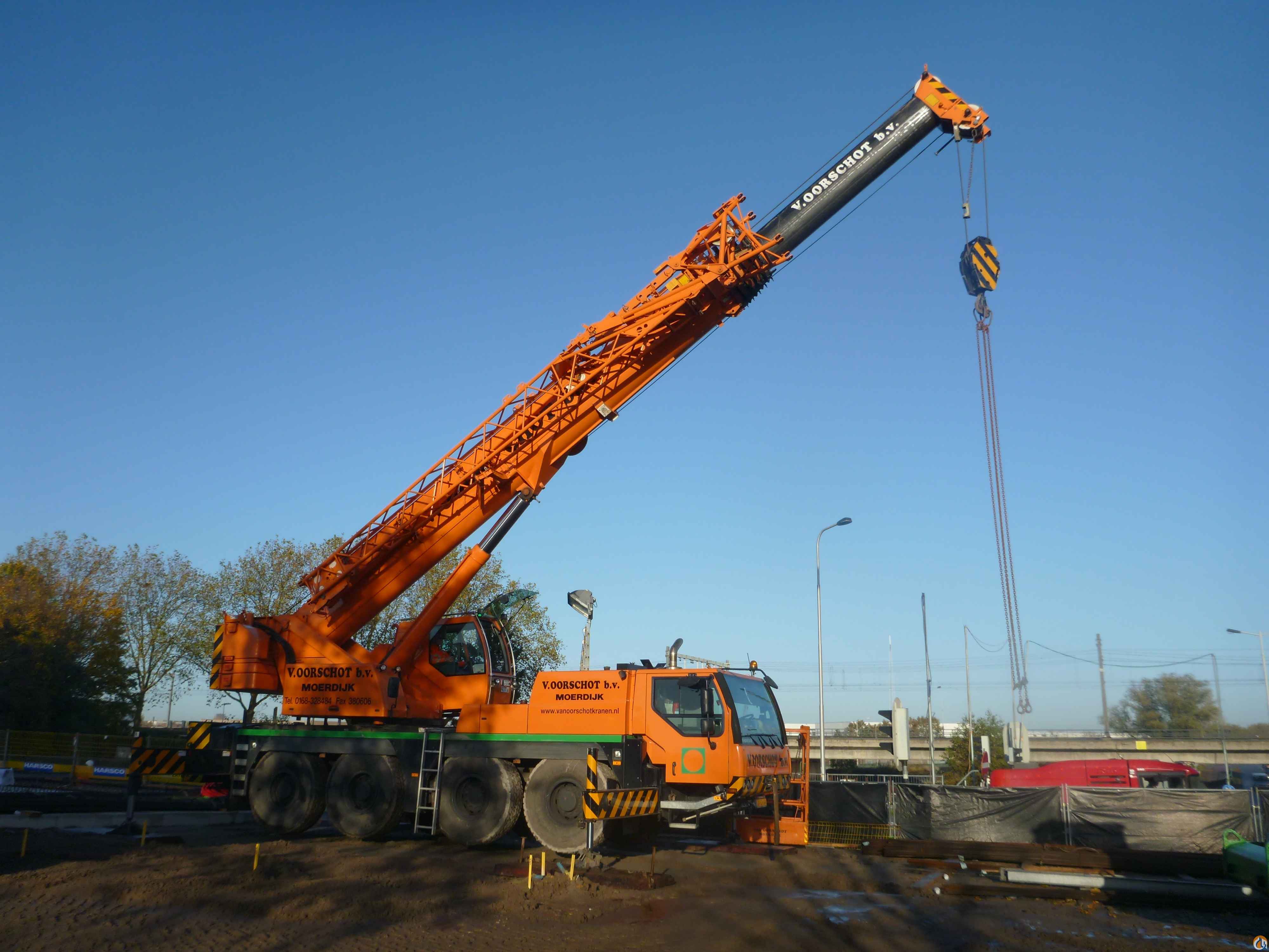 tilt cab, 40 ton 3 sheave block, 40000 kg capacity, 50 m boom, 16 m swing away offset jib, anti two-block, LMI, auto lube, 14.2 ton cwt, cwt removal device, lower, A/T, 445/95R25, Dutch Registration May 2009, Aboma&Keboma certified.