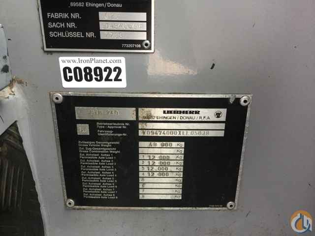 100 US Ton Capacity, 157' Boom, 32-64' offsetable Jib, Upper Cab A/C & Heater, Carrier Cab Heater, Tilting Cab, Anti-Two-Block, Load Moment Indicator, Auto Lube System, 35,000 lb. Counterweight, Liebherr Carrier Engine, Automatic Transmission, 8x8 Drive, Quad Axle Boom Dolly. Low Km unit.
