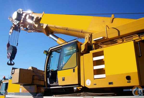 2004 Liebherr 1100-4.1 - 120 US tons - 171 ft. main boom - 35 ft. to 62 ft. hydraulic offsetable SAW jib - Auxiliary winch w/ rooster sheave - two 23' boom extension inserts - Liebherr 460 HP in lower (4,400 hours) - 202 HP in upper (7,200 hours) - 128,000 KM (80,000 miles) - 8 x 8 x 8 drive - Telma Brake - 20.5 x R25 tires - 48,500 lb. Counterweight - tiltable and telescoping upper crane cabin - boom dolly preparation - 100 ton five sheave block - 65 ton three sheave block - 10 ton ball - wind speed indicator - boom light kit - upper and lower air conditioning - upper and lower radio / CD player - all charts and manuals in English (US specs).