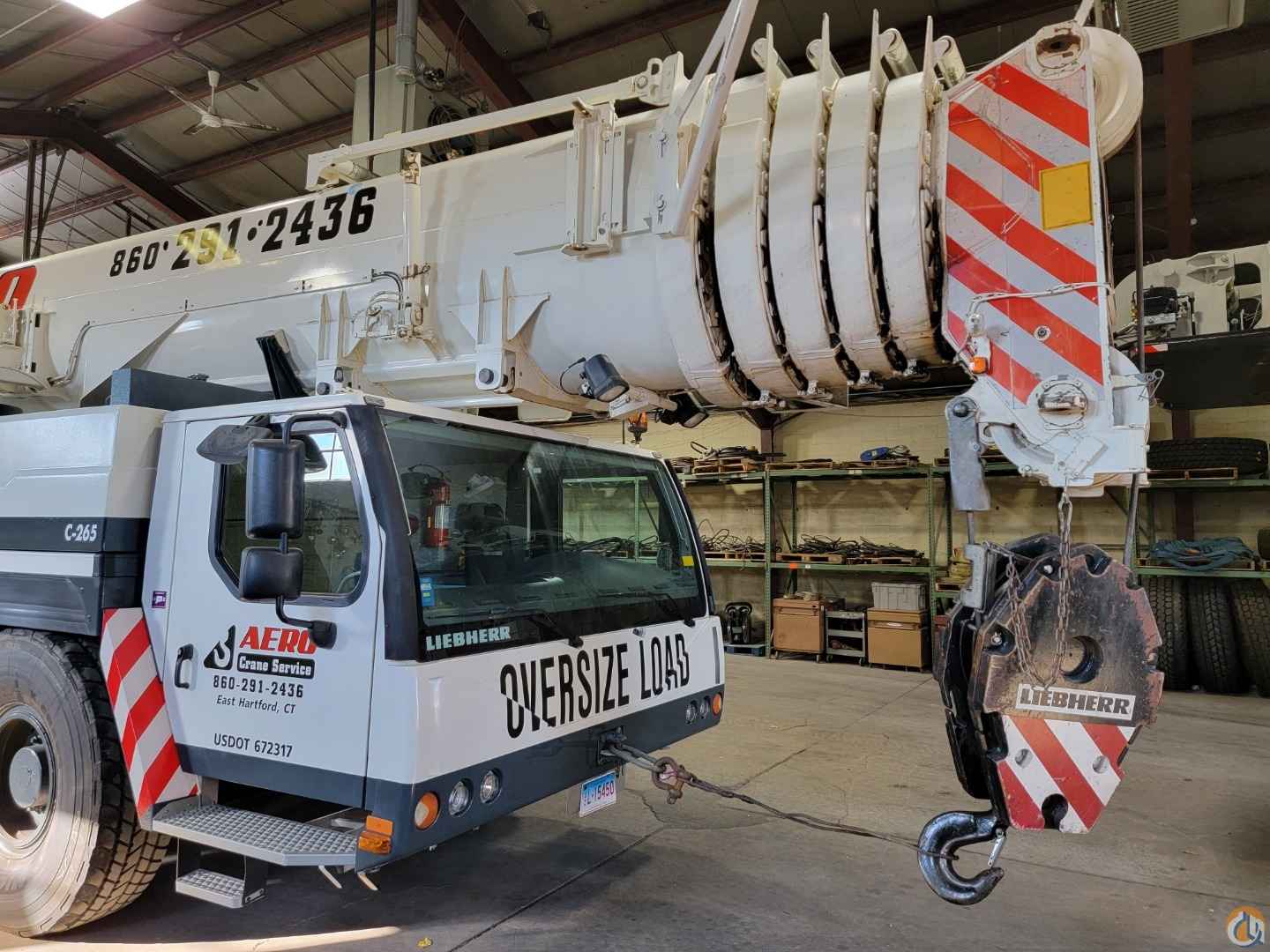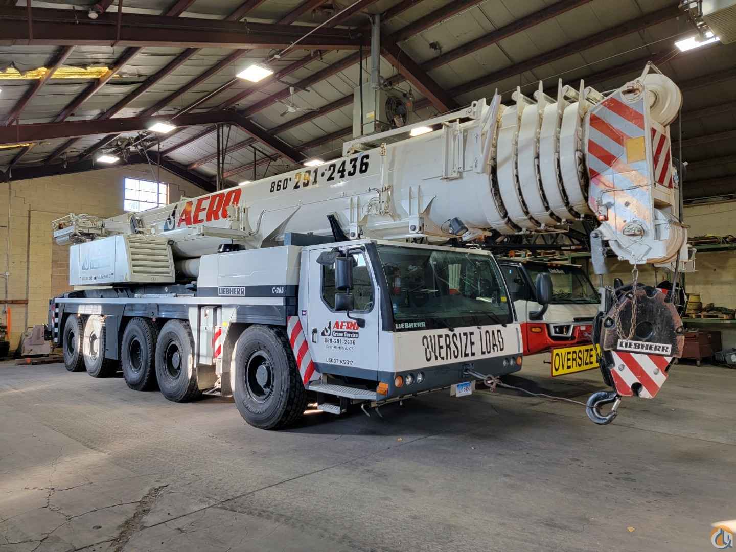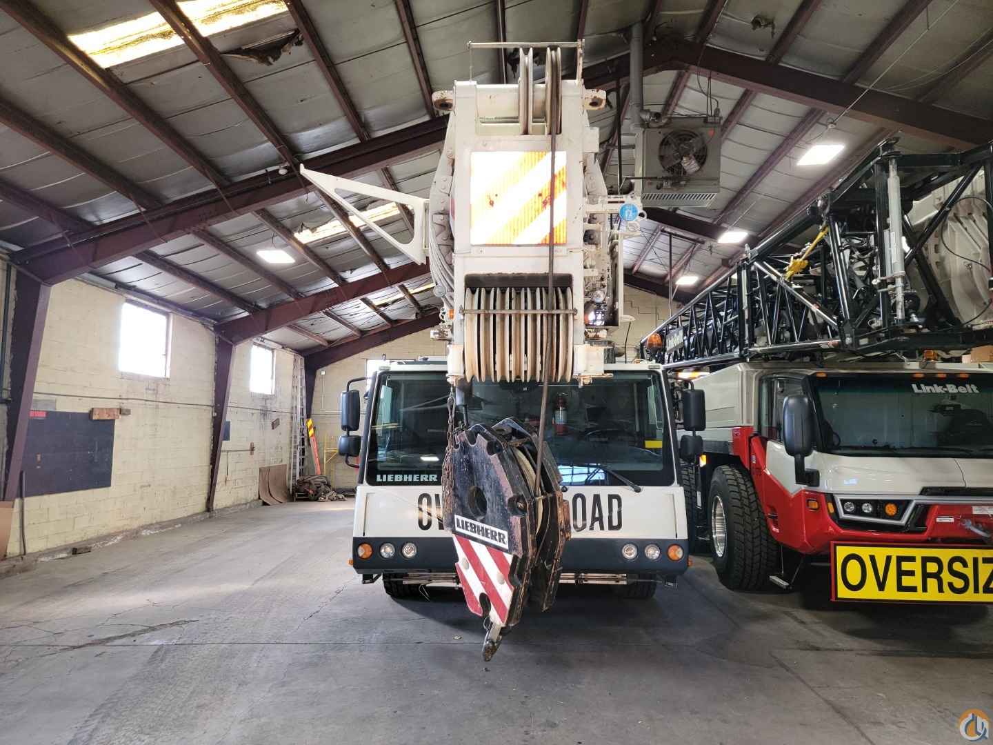 Equipped with: 197 ft. 6 section latching type boom, (1) 23 ft. boom extension, 40 ft.-72 ft. mechanical luffing jib, (2) 23 ft. jib Insert extensions, main & auxiliary winches, European Heavy Rigging Jib, max counterweight 163,500 lbs, counterweight removal system, boom float kit, dolly prepped, hydraulically tiltable cab, LICON LMI system, joystick controls, air condition-upper & lower cabs, Tier 3 engine, no DEF, carrier engine: Liebherr D846A7 diesel engine with jake brake-503 HP, 25,000 Miles & 2,412 hours; upper engine: Liebherr D934LA6 diesel engine-245 HP 5,214 hours, ZF 12 speed automatic transmission, 16.00R25 Tires-70%, 5 sheave double hook block-238,099 lb. capacity, 3 sheave double hook block-156,200 lb. capacity, single sheave single hook block-68,640 lb. capacity, heachache ball-23,100 lb. capacity. Excellent condition, garage stored, has current inspection.