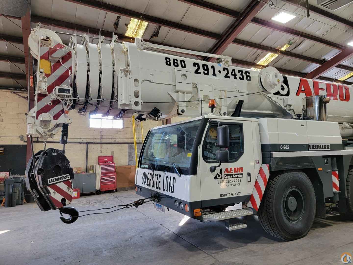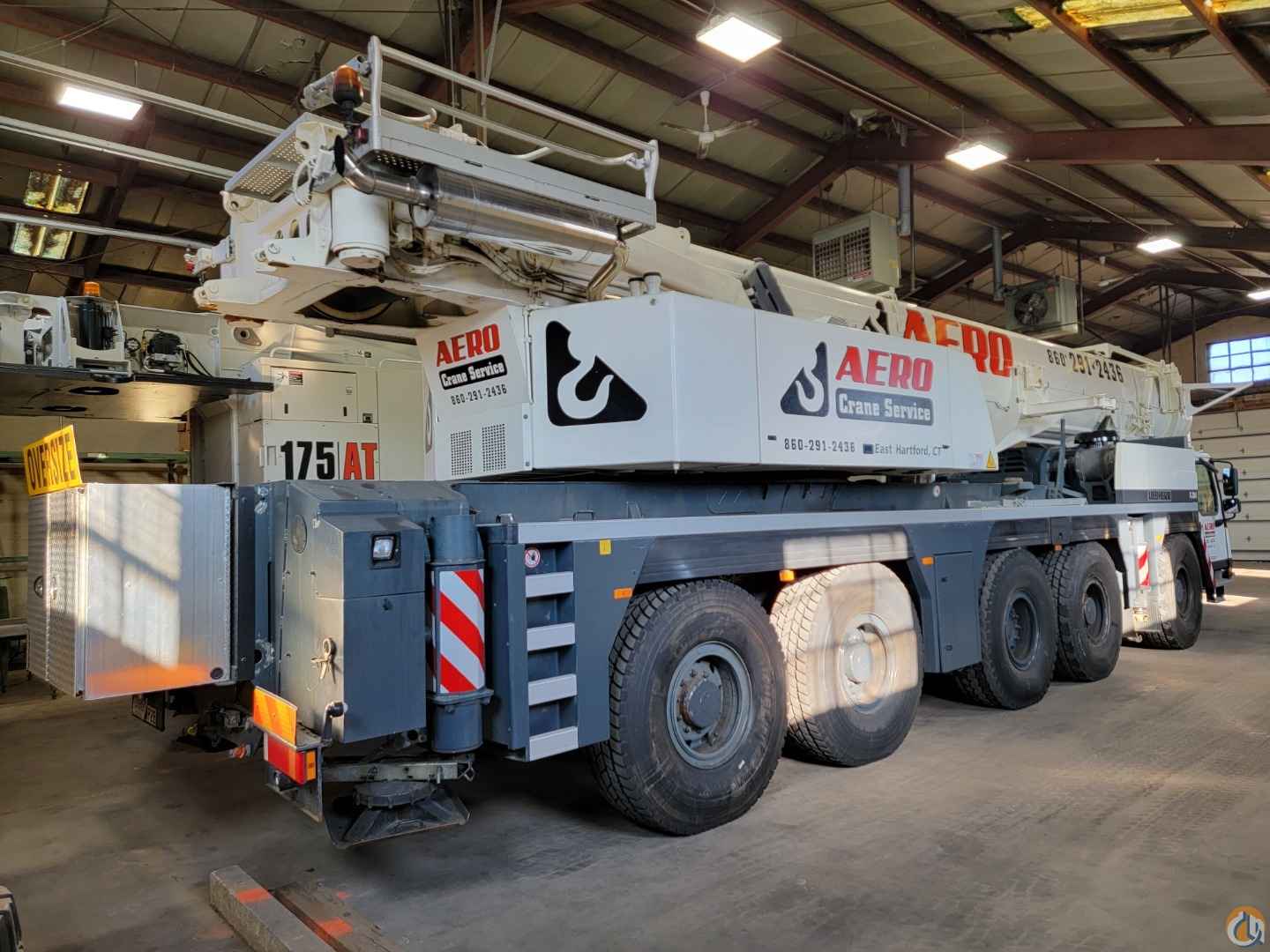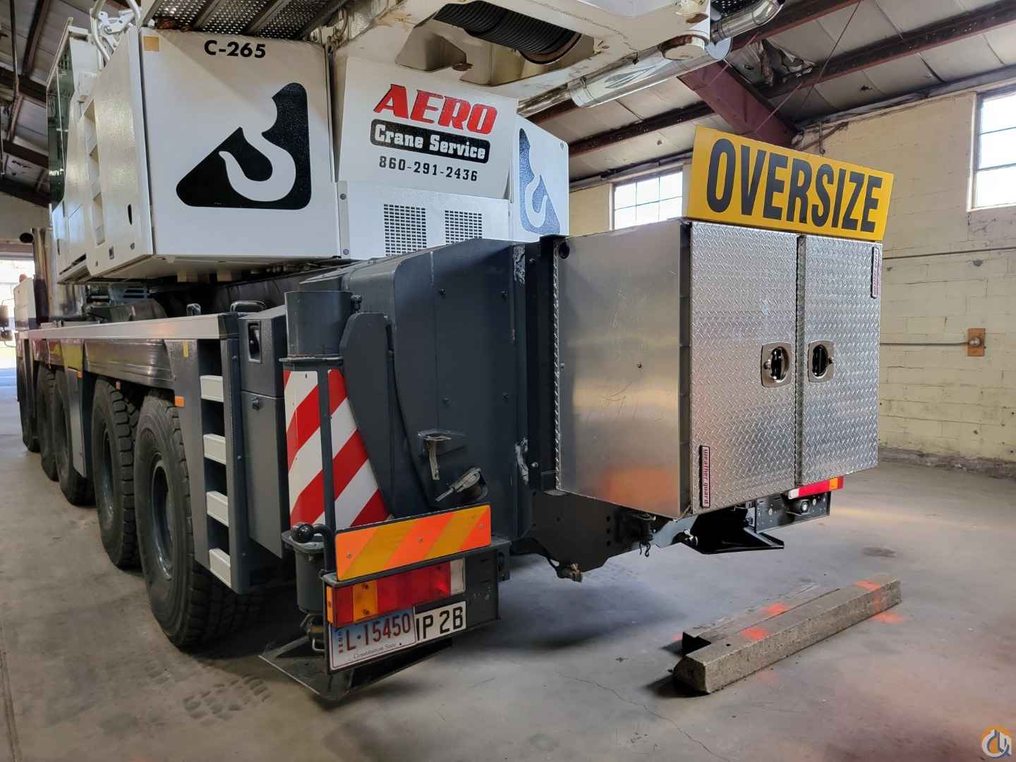 Equipped with: 197 ft. 6 section latching type boom, (1) 23 ft. boom extension, 40 ft.-72 ft. mechanical luffing jib, (2) 23 ft. jib Insert extensions, main & auxiliary winches, European Heavy Rigging Jib, max counterweight 163,500 lbs, counterweight removal system, boom float kit, dolly prepped, hydraulically tiltable cab, LICON LMI system, joystick controls, air condition-upper & lower cabs, Tier 3 engine, no DEF, carrier engine: Liebherr D846A7 diesel engine with jake brake-503 HP, 25,000 Miles & 2,412 hours; upper engine: Liebherr D934LA6 diesel engine-245 HP 5,214 hours, ZF 12 speed automatic transmission, 16.00R25 Tires-70%, 5 sheave double hook block-238,099 lb. capacity, 3 sheave double hook block-156,200 lb. capacity, single sheave single hook block-68,640 lb. capacity, heachache ball-23,100 lb. capacity. Excellent condition, garage stored, has current inspection.