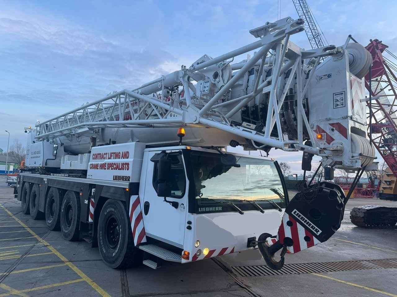 2022 MODEL LIEBHERR LTM 1230-5.1, 246' MAIN BOOM, 66' MEC. JIB, 2ND WINCH, ROOSTER SHEAVE, 1 & 3 SHEAVE BLOCKS, AC UPPER & LOWER, ZF TRANSMISSION, 20.5R25 TIRES, 42,100 KM, 10X8X10 DRIVE, BOOM FLOAT KIT, EXCELLENT CONDITION, AVIAL. MID APRIL