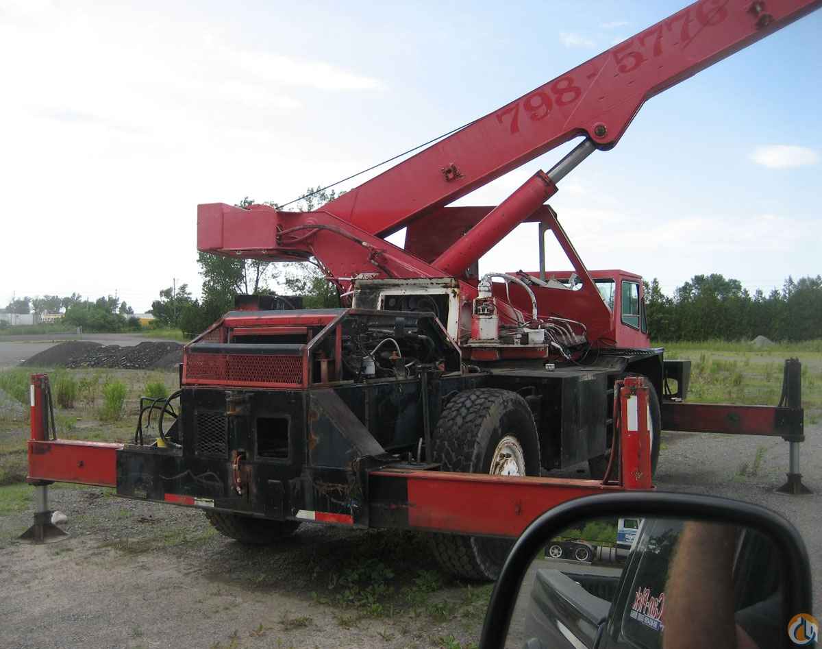 Crane has 2 new tires on it engine is a Cummins engine runs good auto 6 speed tranny works good 4 wheel drive brakes work good no hyd leaks crane needs door for cab and a little paint no rust have all panels they have been sand blasted and primed.