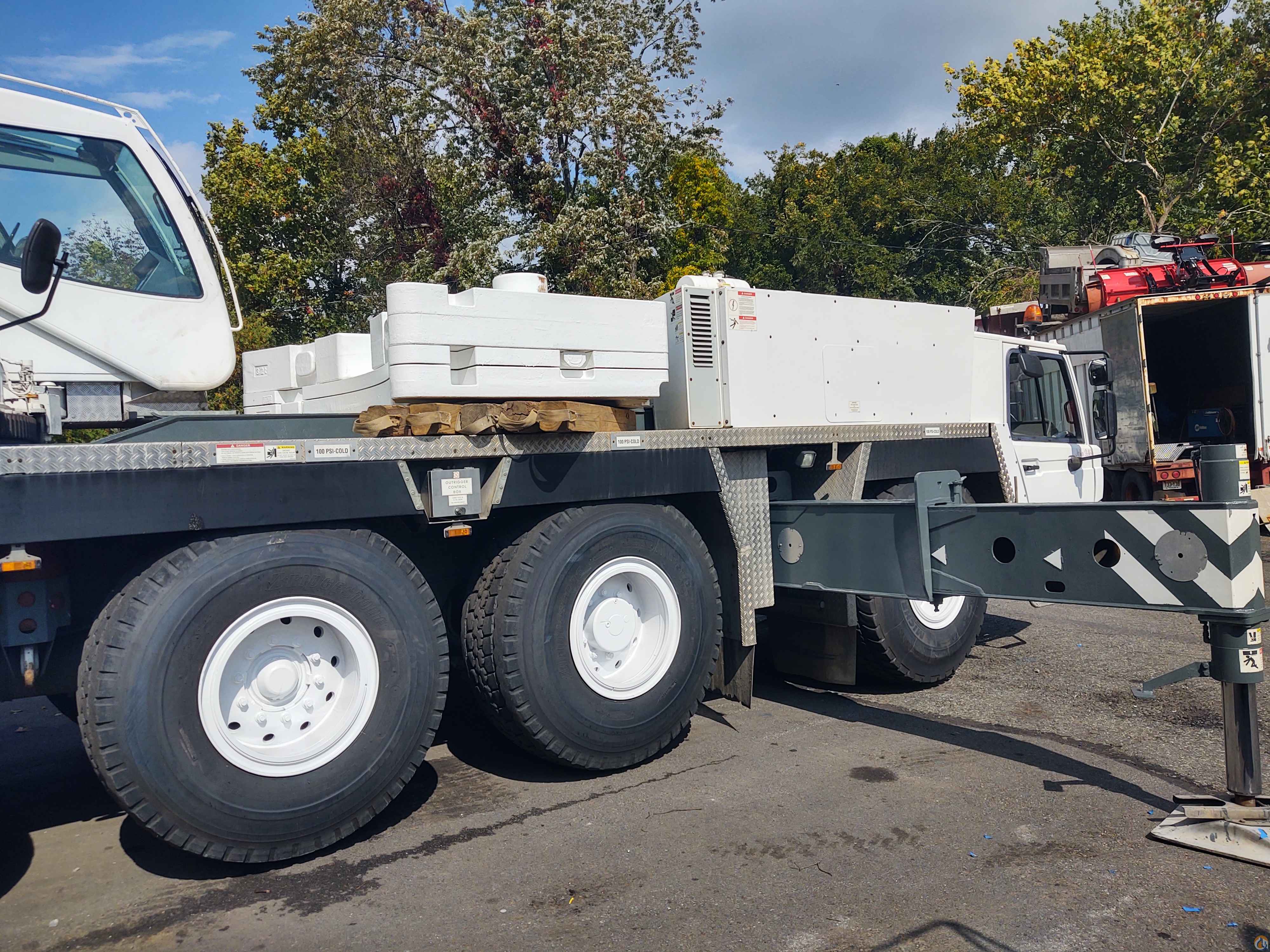 2008 Tadano ATF 110-G5 Mounted on Faun 10x8x10 Carrier with wide tires, Mercedes Engines in UPPER and LOWER. ZF TRANS, A/C Equipped UPPER and LOWER, Spare tire. Crane: 170' Main Boom w/ 51' Telescopic Jib plus 2 inserts. 77,160 lbs Counterweights. Aux Winch and Aux Head. Headache ball, 1 sheave hook block, and 5 sheave double hook block.