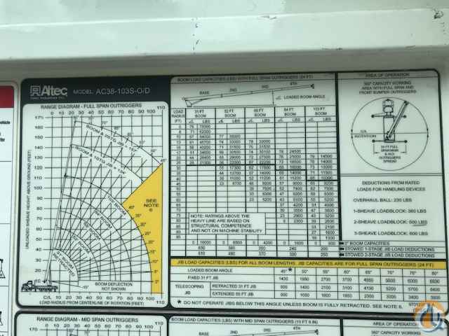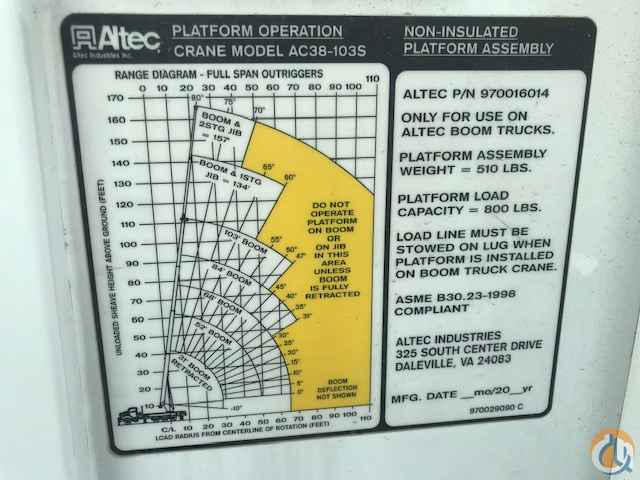 Altec 38103, 38 ton, 103’ Main boom, 55’ jib, Rear Cab a/c, man basket, wireless remote, 5 hydraulic outriggers