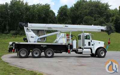 Altec AC38-127 featuring 127′ of main boom with a 31′-55′ telescopic JIB. It has three position out-and-down outriggers with FBO. The outrigger controls are located in the within direct line-of-sight to the outrigger shoe touch-down zone which reduces crush hazard exposure on the job site. It is equipped with radio remote and two man platform. The open operator’s seat features pilot operated controls and a full LMI system. It is mounted on a 2014 Peterbilt 365 with Cummins ISL 380 hp and 10 speed transmission. Please call for more information. MORE INFORMATION