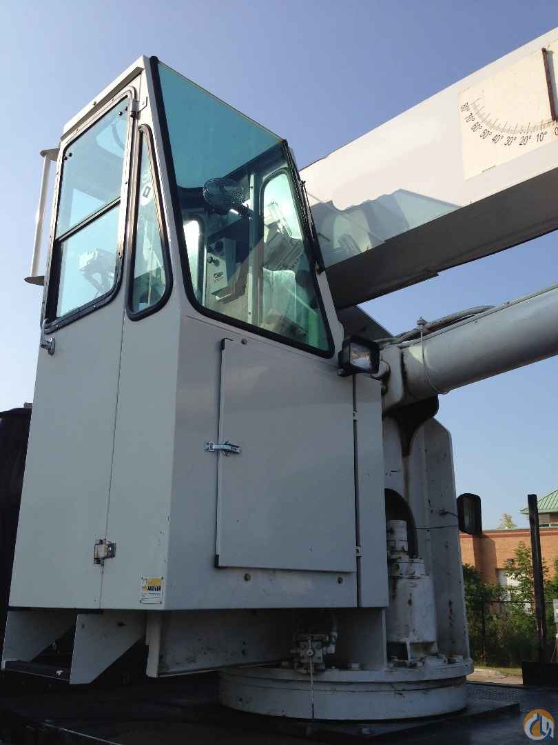 Stand-up Operator Console & Platform – rotates with turret: includes: engine start/stop, lifting capacity charts, load range charts, bubble level gauge, signal horn, variable speed foot throttle, and system pressure gauge