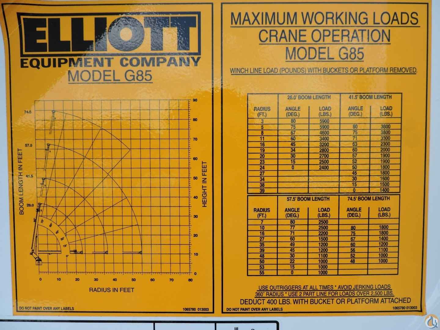 Used Elliott G85F equipped as follows: