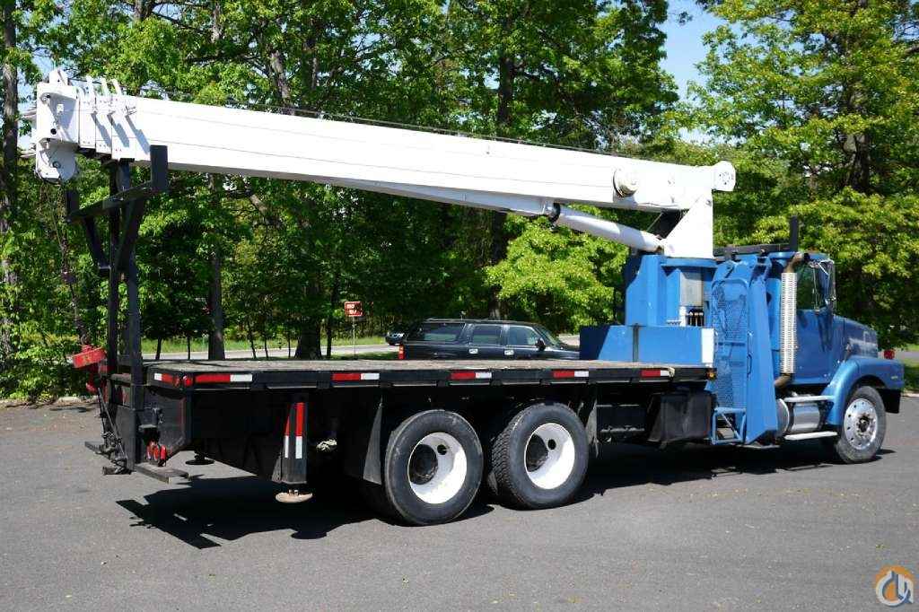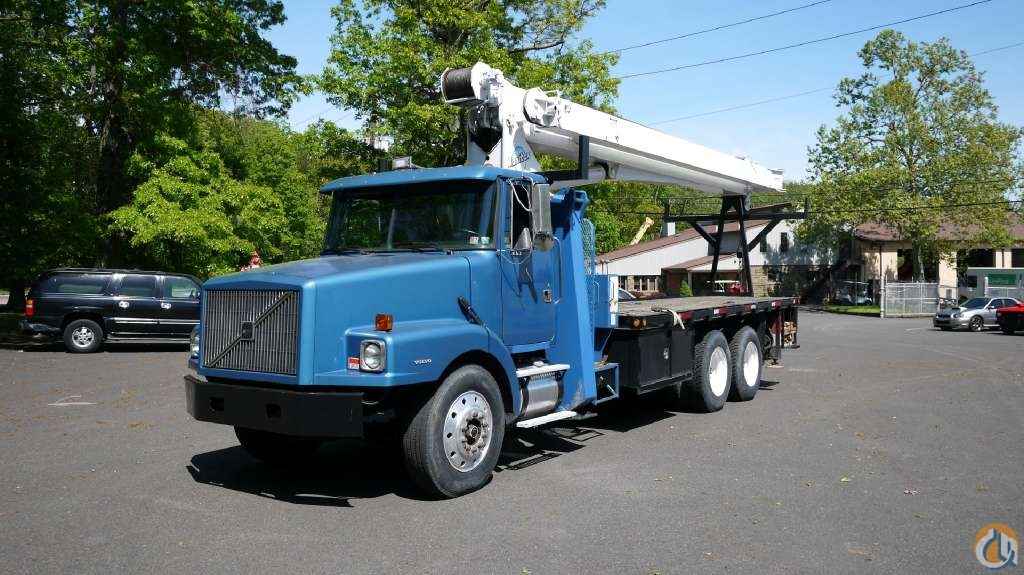 1997 VOLVO WG64; VOLVO VED12 6 CYL DIESEL (345 HP); FULLER 8LL; TANDEM AXLE; POWER STEERING; AIR BRAKES; AIR CONDITIONING; TIRES: 11R24.5; 54K GVW (14K FRONT, 40K REAR). MANITEX CRANE MODEL 2284; 22 TON; 130' TOTAL HOOK HEIGHT; 4 SECTION MAIN BOOM; -104' 26' SWING AWAY JIB; OVERLOAD SYSTEM; ANTI TWO-BLOCK; 2 SP WINCH; OVERHAUL BALL; 4 OUTRIGGERS; 20' WOOD FLATBED.