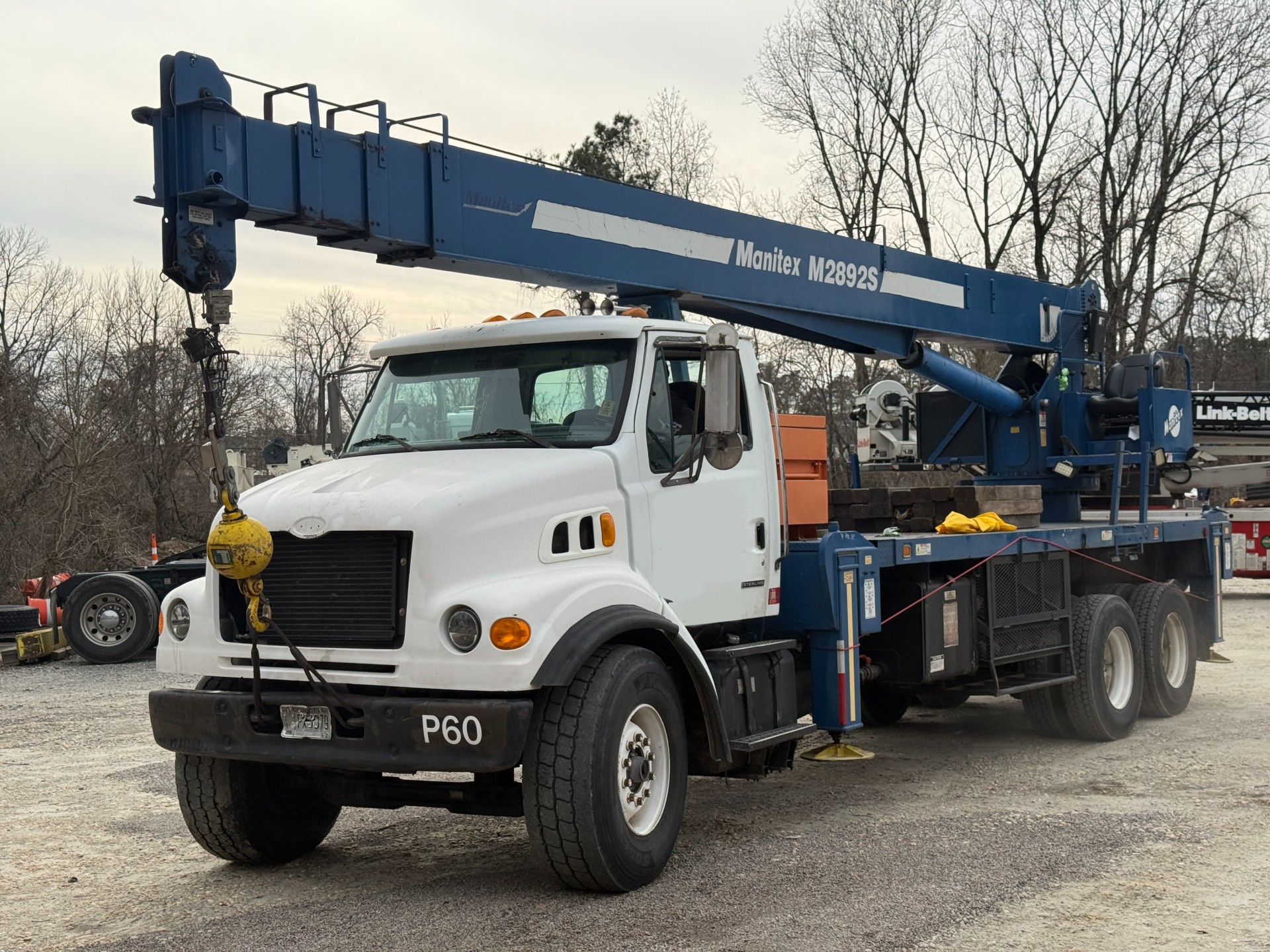 28 Ton Cap, 92′ Main Boom, Mounted on Sterling L7501 Truck, Trimble LMI and A2B System, Roadranger 9 Speed Manual Transmission, CAT 3126 Engine, Single Sheave Block, Ball, 381,707 miles.