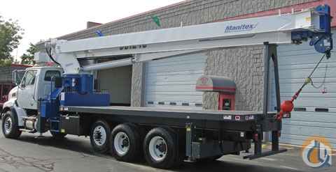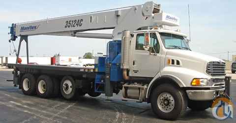 Location..Wisconsin. New 2008 Manitex model 35124C, mounted on a new 2006 Sterling model LT9500 truck with 60,000 G.V.W., auxiliary lift axle, 410 H.P. Mercedes pre-emission engine, dual 60 gallon aluminum fuel tanks, 22 ft. flatbed, radio Anti-2 Block system, 4 hydraulic out/down outriggers with 3 position settings, hydraulic front bumper stabilizer, 2 speed winch, LMI overload protection with operator's display monitor, 134 ft. tip height with main boom and 165 ft. tip height with 30.5 ft. jib, INCLUDED. This unit is new and comes with a 12 month crane warranty and std. Sterling truck warranty. F.E.T. is included.