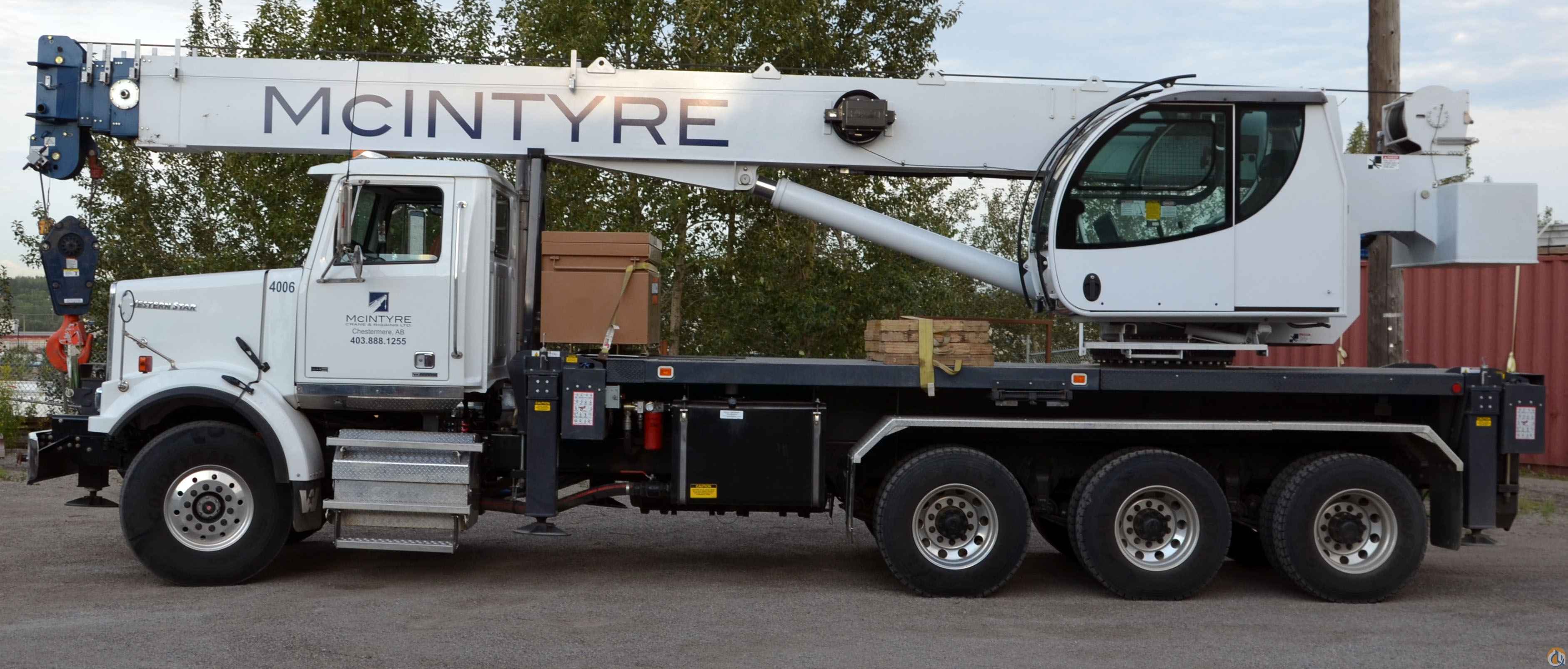Crane mounted on a 2012 Western Star 4800, single steer, tri-drive. New DDS engine w/13 speed. Truck has pintle hitch w/air & electric brakes. Crane has 2x10" LED Boom lights, New style tilting operator's cab.