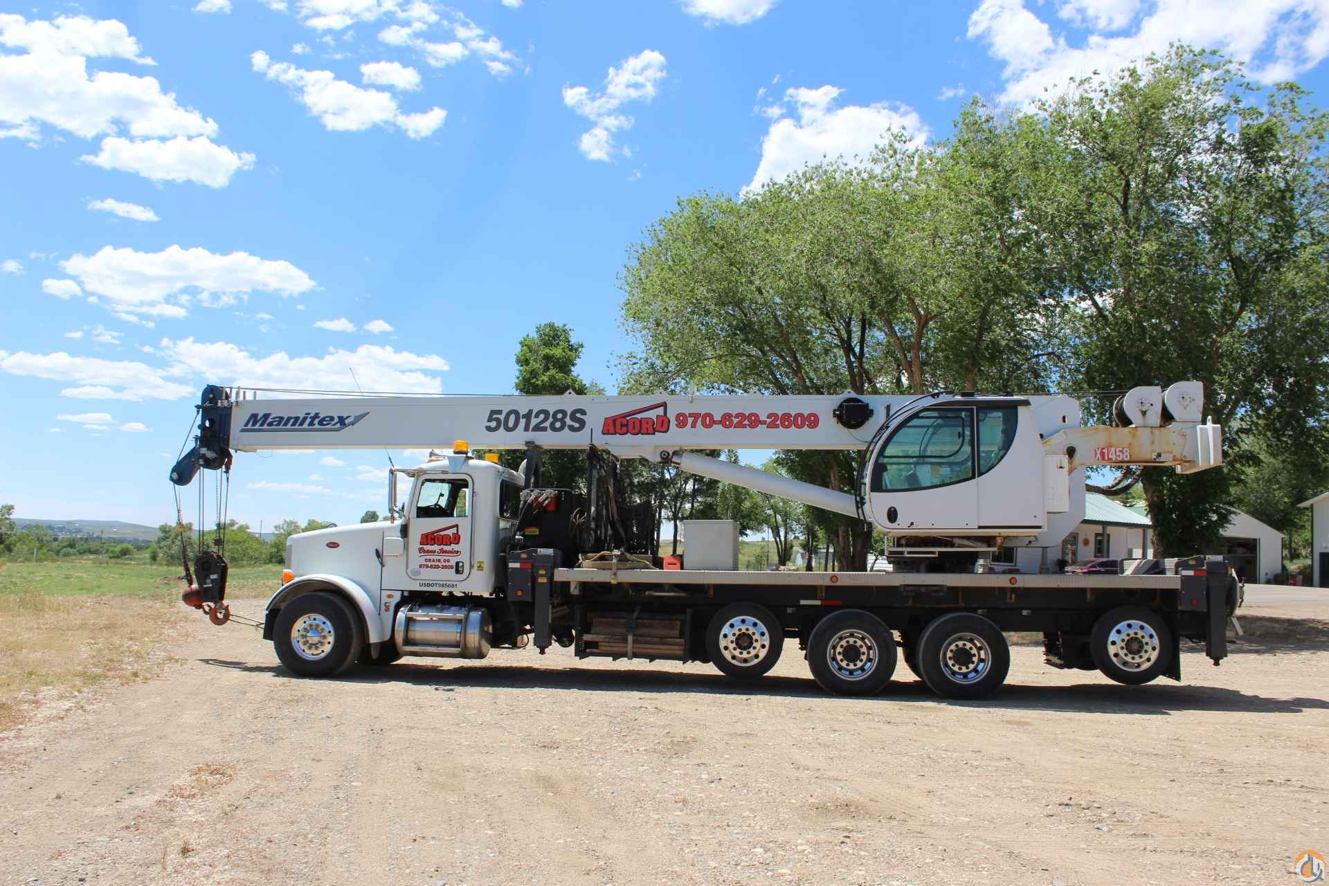 2014 Manitex 50128S 128 ft. boom with 32-49 ft. jib on a 2014 Peterbilt 500 hp Cummins.62,000 miles, 6,200 hours. 2 Winches. 1,720 lb. counterweight, 35 Ton Block and Ball, rigging box, Tilt cab with A/C, tires are at 90%.