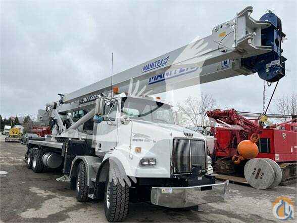 2023 Manitex 50128SHL 50 ton capacity swing cab 128’ four section full powered main boom Two piece 32’ – 49’ jib with offsets 2-speed Hoist w/ Grooved Drum Rotation Resistant Wire Rope â…†diameter Hydraulic Rotation Drum Indicator 7 Ton (6.3 mt) Hook and Ball Deluxe operators cab with 20 degree tilt Pilot Controls, diesel heater and Air Conditioning Heated fully adjustable seat Engine Monitoring System - Display in upper cab Full LMI with with all function visual and audible alerts with cutouts Hard Wired Anti-Two Block w/ Lockout Engine Start/Stop, Electronic Throttle Combined free swing and non free swing function Hydraulic Oil Cooler 4 Out-And-down outriggers, 22' over-all spread, with mid span and fully retracted. Front outrigger 360° Area of Operation, Continuous Rotation Radio hand held remote outrigger controller. Aluminum Step Ladder Diamond Plated Aluminum Decking Mounted on a new 2023 Western Star 4800SB TS 2023 Detroit DD13 (450HP/ 1650lbs Torque) Allison 4500RDS 6 Speed 40,000 lbs front axle 46,000 lbs rear axle Rear axle ratio 4.56 Full Lock Front tires: Michelin XZY-3, 425/65R22.5 20 Ply Rear tires: Continental HDC3, 11R22.5 16 Ply (2)- LH & RH 80 Gallon Aluminum Fuel Tanks Heater/air conditioning AM/FM/Bluetooth Radio