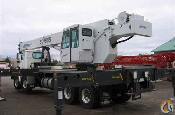 Location...Canada. •50 ton capacity •155 foot full power main boom with quick reeve boom head •Single piece jib 39 feet with 0, 15, 30 off sets •Enclosed operators cab with diesel heater •Pilot operated controls Single axis controllers (four sticks) •Free swing •Swing speed control settings •Load Moment indicator with overload shutoff •Radio anti two block safety device •Main hoist , 453FPM, bottom layer line pull 13,396lbs •Two speed with grooved drum •Oil cooler standard •360 degree and over the rear load charts •Headache ball •35 ton three sheave hook block •Out and down outriggers front and rear •Single front stabilizer •Independent outrigger controls from cab and manual from ground •Maximum outrigger spread 23 feet and intermediate spread 15 feet •Aluminum decking •Rear mounted on a New Western Star 4900SA Tandem Tandem •Mercedes diesel MBE4000 450HP 12.8L engine •Eaton Fuller 13 speed transmission •40,000 tandem front axles, 46,000 tandem rear axles (air ride) •Full lock up diffs and interaxle •Dual 100 gallon tanks •Aluminum rims front and rear (outside only)