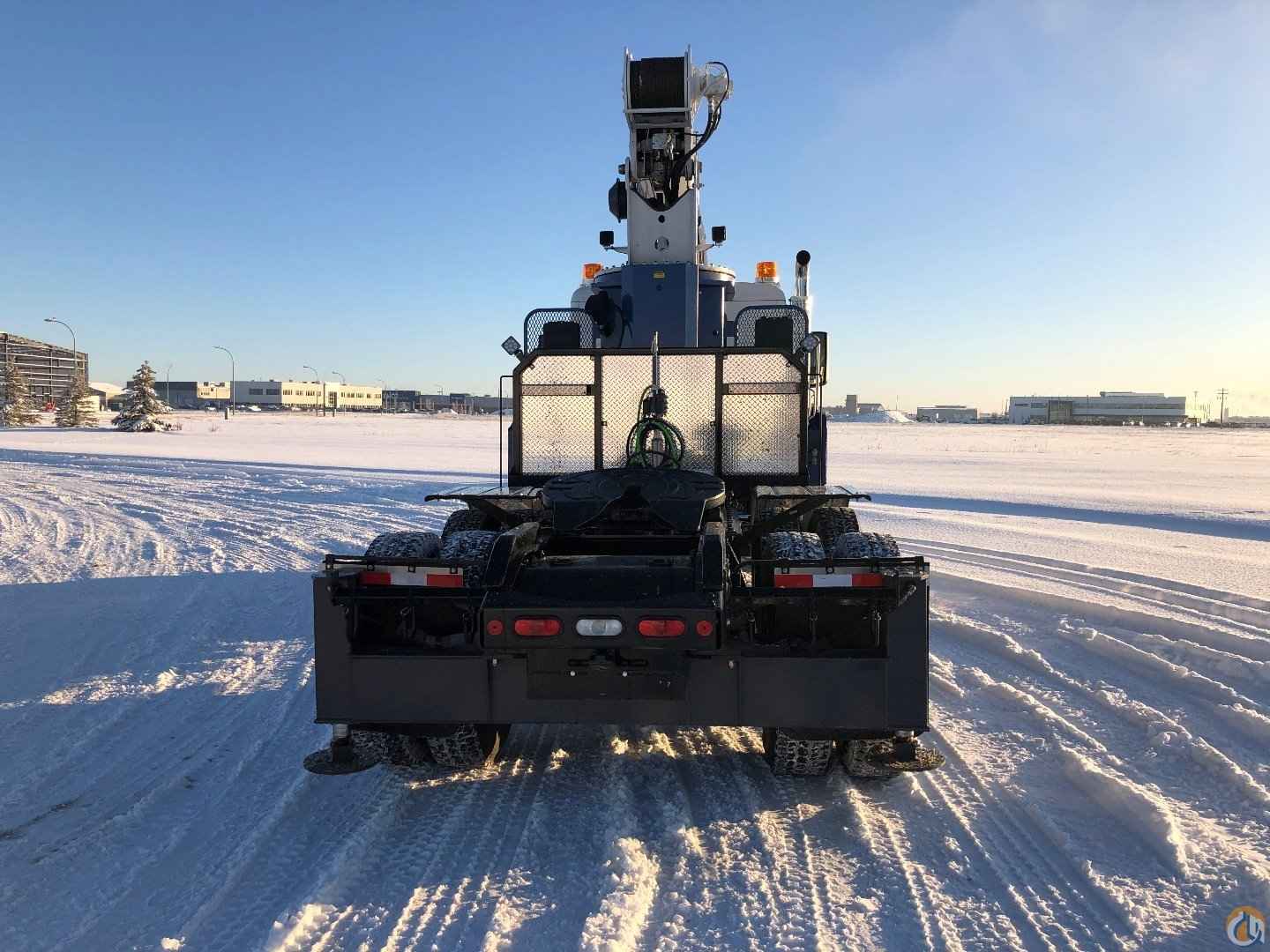 This compact picker standard out & down main outriggers & H-style rear stabilizers. The crane includes a front bumper stabilizer giving the 360 degree chart. The LMI is wired externally to the tip switch.