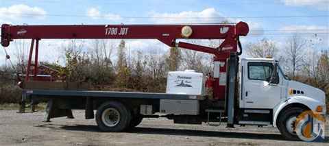 Location..Wisconsin. 2001 Manitowoc Crane model 1770 JBT - 17 ton capacity 70'-80'main boom - 110' max. tip height with 30' jib - Anti-two block system keeps hook from being sucked up into boom tip - Hydraulic overload protection system - Dual operator control platforms with engine throttles, horn, engine stop and overload switches - Hydraulic oil cooler. Crane does not have an hour meter, but has had recent crane and chassis inspection and was deemed to be in excellent condition. Very little use on this crane. Mounted on 2001 Sterling chassis with CAT diesel engine and ~4,500 original miles - 6 speed transmission - Airbrakes with Bendix Air Dryer - Air Conditioning - Cruise Control - suspension drivers seat, fixed passenger seat - 21' wood flatbed with aluminum under body Tool box and more. AVAILABLE IMMEDIATELY. Please call Megan for more details at 877-352-7263.