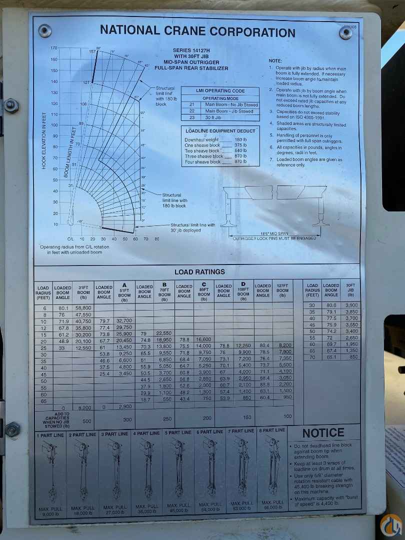 2005 National Crane 14127H, 33 ton, 127’ main + Jib, with Remotes & Man Basket