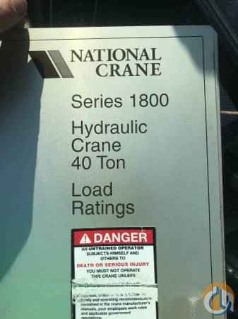 National 1800 series 40ton 103’ Main boom, 31’ offset jib rear cab, heat and a/c, twin winches, 5 hydraulic outriggers