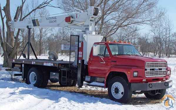 <p><strong>Location...Wisconsin.</strong> 1990 National Crane Model 456A 10 ton, with 56' of main boom and 66' tip height with HARD WIRED REMOTE CONTROLS, Two sets of OUT AND DOWN OUTRIGGERS, Anti-two block, Hydraulic Capacity Alert (overload protection) with reset button, dual side controls with excellent visibility, 360 degree rotation, has steel flatbed. Mounted on 1990 Ford F800 30,000# GVWR chassis with a rebuilt Ford V8 460 gas engine, 5/2 manual transmission, NEW TIRES, NEW PAINT, hitch and more. Truck has very low miles (odometer shows less than 10,000) and has 8,177 engine hours. Please note: no basket is included. </p> <p><strong><span style="font-size: small;">SOLD</span></strong></p>
