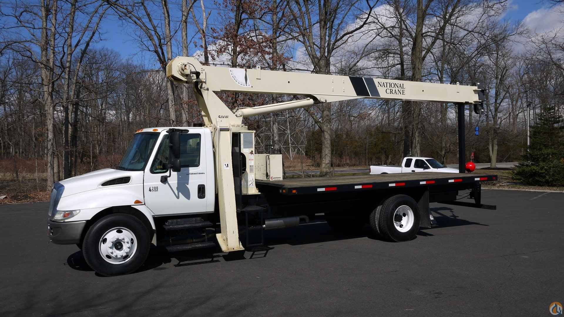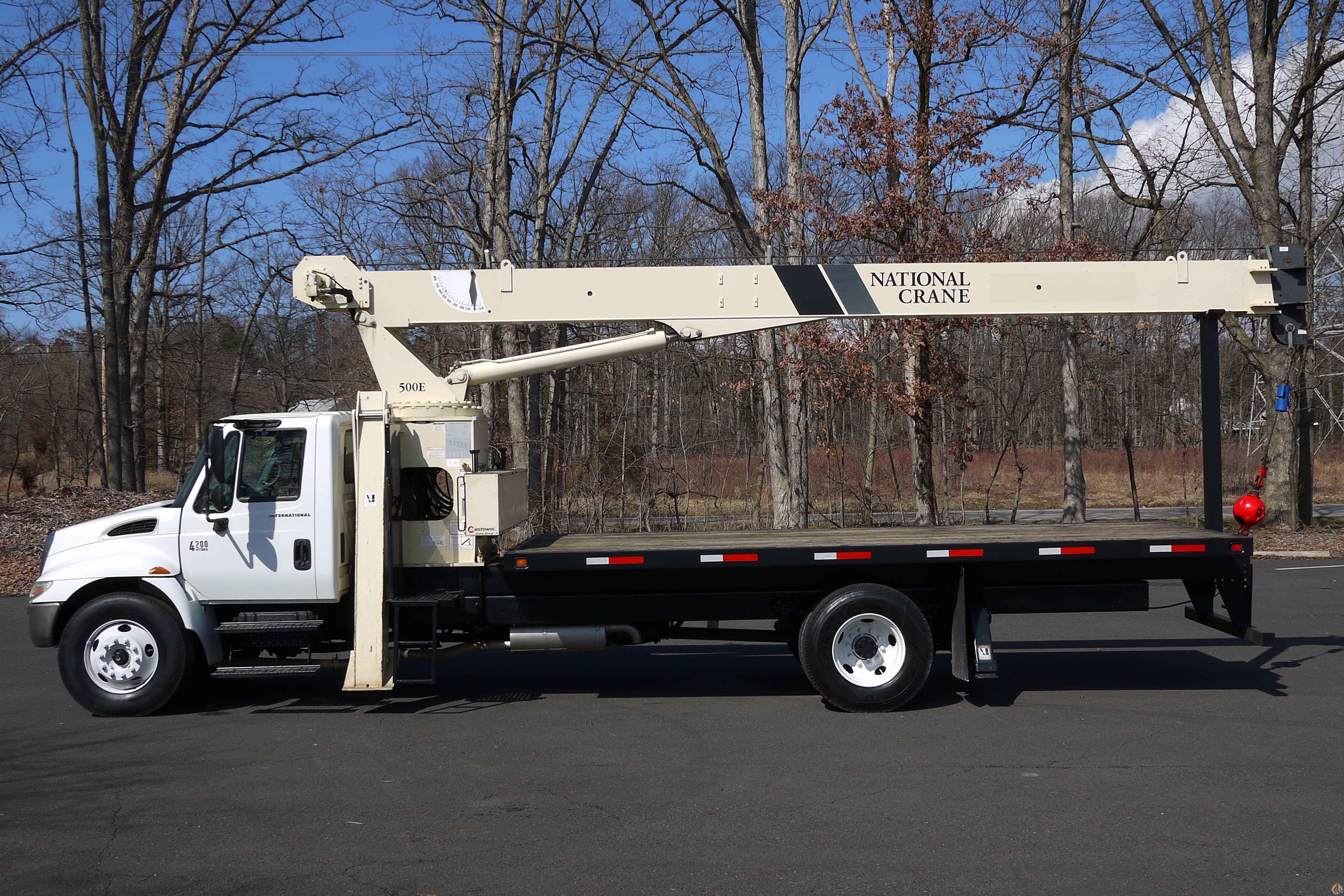 <p style="text-align: justify;"><span style="font-size: medium;">2006 INTERNATIONAL 4200; VT365 8 CYL DIESEL (230 HP); 6 SP; POWER STEERING; POWER BRAKES; AIR CONDITIONING; TIRES: 11R22.5; 33K GVW (12K FRONT, 21K REAR).</span></p> <p style="text-align: justify;"><span style="font-size: medium;"> </span></p> <p style="text-align: justify;"><span style="font-size: medium;">NATIONAL CRANE MODEL 500E; 18 TON; 81' HOOK HEIGHT; 3 SECTION HYD BOOM; CAPACITY ALERT/OVERLOAD SHUTDOWN; SINGLE SPEED WINCH; OVERHAUL BALL; 4 OUTRIGGERS; 20' WOOD FLATBED.</span></p> <p style="text-align: justify;"> </p> <p style="text-align: center;"><span style="font-size: xx-large;"><strong>SOLD</strong></span></p>