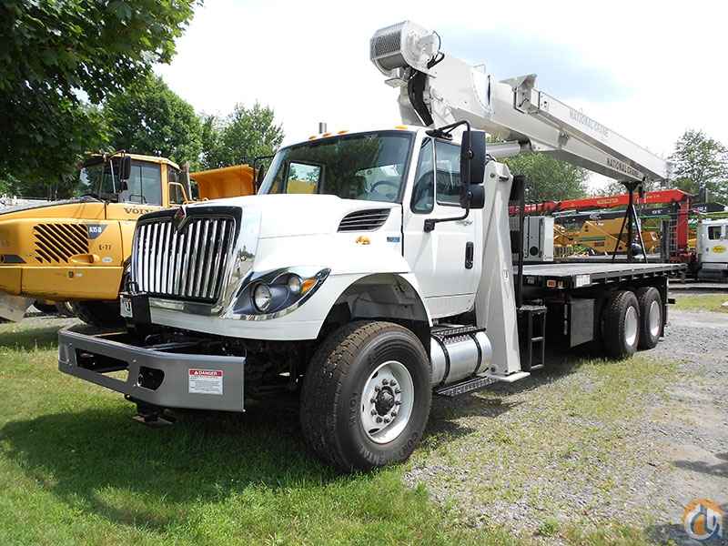Single Front Stabilizer, 22' Super Duty Flat Wood Bed, Air Shift PTO, Removable Rear Boom Rack, 22' Torsion Box, 29'6"-100' 4-Section Boom, 44' Jib, Mounted on 2012 International 7500 Chassis, 330HP, 60,000 GVW, 20K FA/40K RA, Fuller RTO-1108LL Manual Transmission, Jake Brake, Trailer Package, Navistar EPA '10, 375-Degree Non-continuous Rotation, Hour Meter in Cab, A/C.