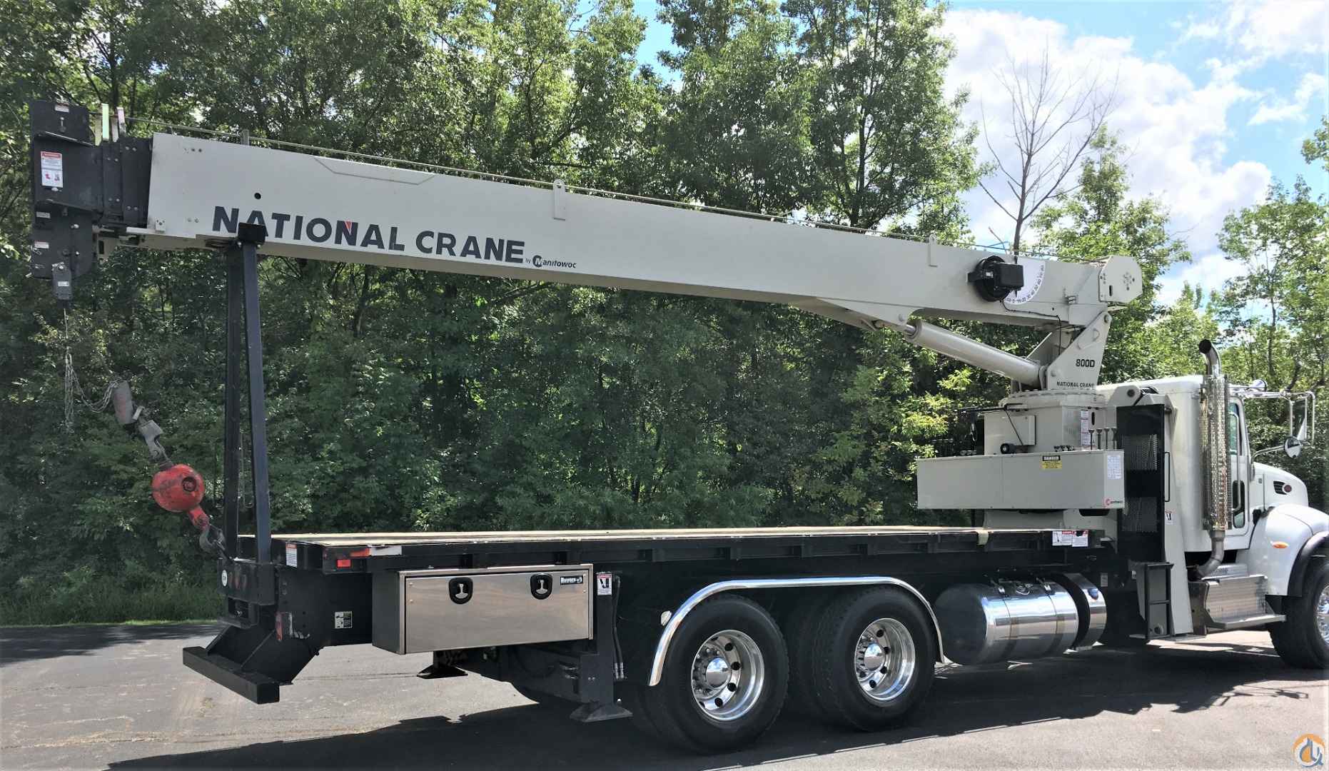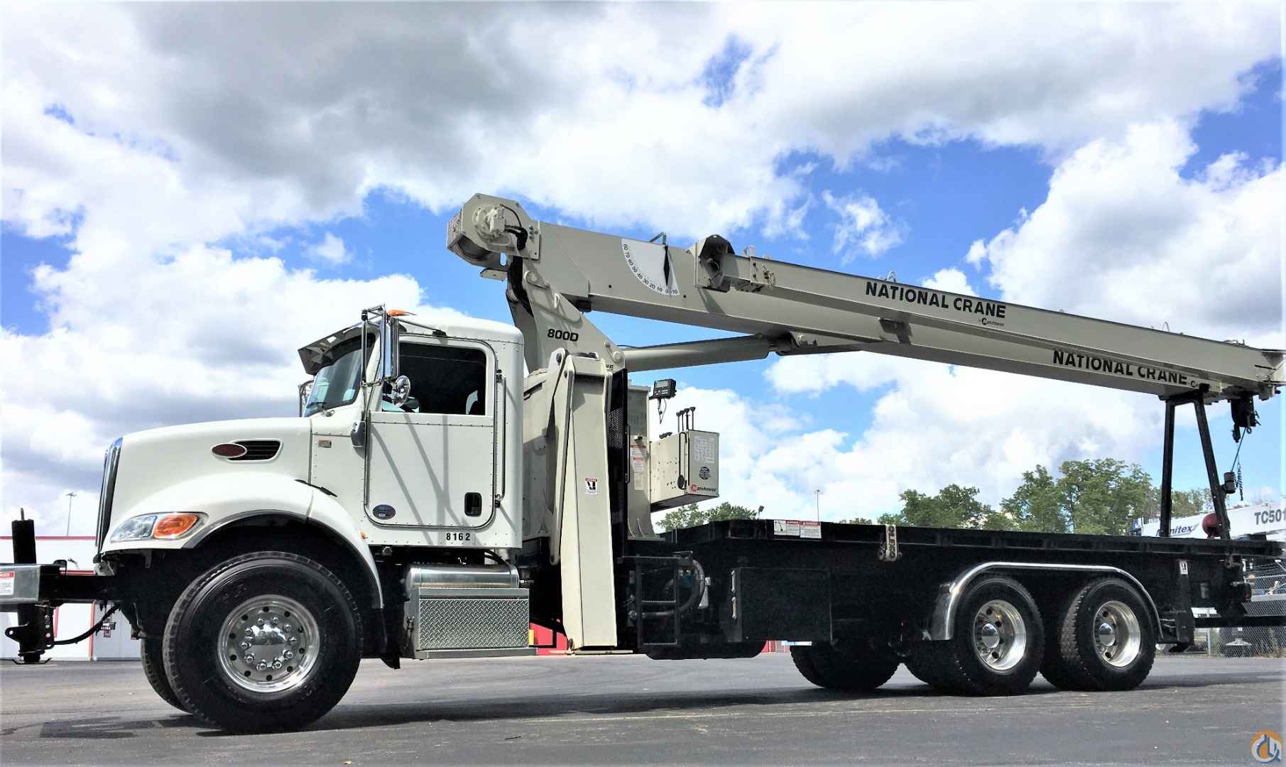 National 8100D, 23 USt, Stand Up to Operate Crane, 100' Main Boom, 25' - 44' Jib, Front Bumper Stabilizer for 360° Load Chart, Oil Cooler, 48" x 18" x 18" toolbox and Wood Bed. Mtd on a Peterbilt 348 chassis, 350 HP, 8LL Trans, fenders on tandem, 90 Gallon Fuel Tank, and 60,000 GVWR. 13,710 Mileage