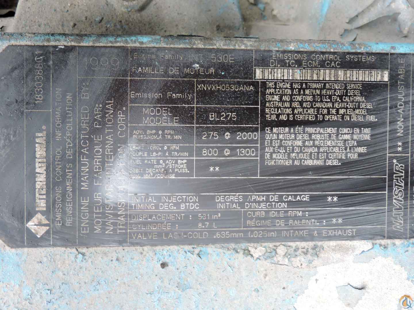 - International BL275 engine – 275 hp at 2000 rpm
