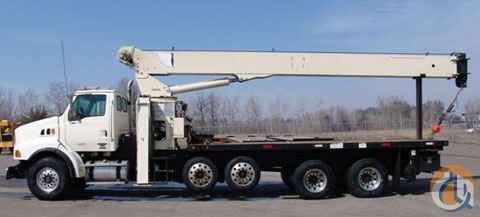 Location..Wisconsin. 2005 Sterling LT9513 chassis with approx. 64,000 miles; Chassis has 410 hp, 12.8L Mercedes Benz engine, Eaton Fuller RTO-14908LL transmission, 60,000 GVWR, TufTrac (premium) suspension, 4:11 gear ratio, 60 gallon fuel tank, Aluminum wheels, Power windows & locks, suspension drivers seat - fixed passenger seat, A/C, tilt steering, stereo, cruise control, Console between seats, Back up alarm. Block heater, Two Tag Axles (for extra payload) - silent drive steer-able axles with aluminum rims, 22' wood flatbed, Stake side pockets with sliding tie down winches, 2 tool boxes, Pintle hitch - 50,000 pound with 85# round ball with glad hands for air brake trailers 2004 National Crane model 9103A, 26 ton, 103' main boom, 113' tip height (no jib)Single front outrigger (bumper mounted - see details above, 4 out and down (main) outriggers, Swivel type cable and hook, Engine start at crane controls (both sides), OC-1 valve for hydraulic tools, Internal (inside boom) anti two block wire - standard on this model, LMI overload protection system (computer)and more. Note: while the SFO front bumper is not installed now, it will be at time of sale. Please call Megan at 877-352-7263 for more details or visit our website at www.cranesandbuckets.com Thank you!
