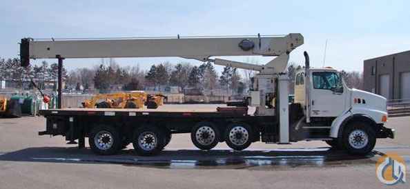 Location...Wisconsin. 2005 Sterling LT9513 chassis Great Alternative to new! Approx. 64,000 miles 410 hp, 12.8L Mercedes Benz engine Eaton Fuller RTO-14908LL transmission 60,000 GVWR TufTrac (premium) suspension 4:11 gear ratio 60 gallon fuel tank Aluminum wheels Power windows & locks Suspension drivers seat - fixed passenger seat A/C, tilt steering, stereo, cruise control Console between seats Back up alarm Block heater Two Pusher Axles (for extra payload) - silent drive steer-able axles with aluminum rims 22' wood flatbed Stake side pockets with sliding tie down winches 2 tool boxes Pintle hitch - 50,000 pound with 85# round ball with glad hands for air brake trailers with 2004 National Crane model 9103A 26 ton, four section, fully hydraulic, telescopic crane 103' main boom, 113' tip height (no jib) Single front outrigger - bumper mounted - see details below 4 out and down (main) outriggers Swivel type cable and hook Engine start at crane controls (both sides) OC-1 valve for hydraulic tools Internal (inside boom) anti two block wire - standard on this model LMI overload protection system (computer) Note: The Crane's owner removed the heavier SFO bumper to lighten his overall weight so he could take crane on smaller roads during the the midwestern winter. The Crane's original SFO bumper is included and will be re-installed prior to sale. Available immediately. Please call Megan at 877-352-7263 for more details or see our website at www.cranesandbuckets.com