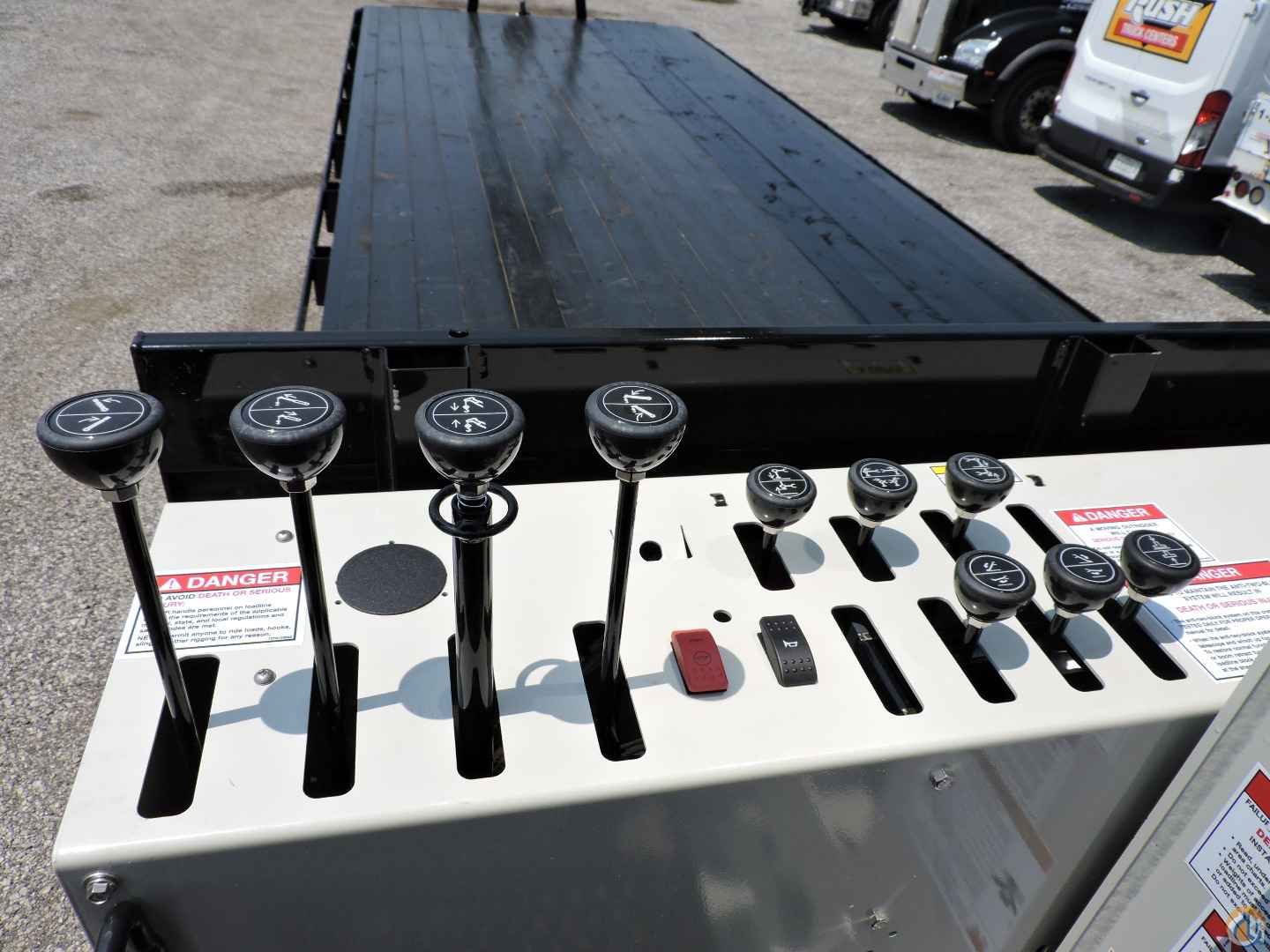 - Dual side controls with operator platforms, foot throttles, horn and kill switches. Operator platform 40” above ground for maximum visibility