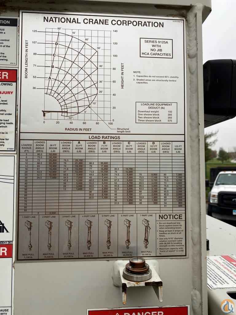 2012 National 9125A, Rear Mount, 26 ton, 125’ boom, Mounted on Peterbilt 367, Aux Wireline Winch, Cummins ISX12, Eaton Trans, Aluminum Wheels, 6300 hours, 32000 miles.