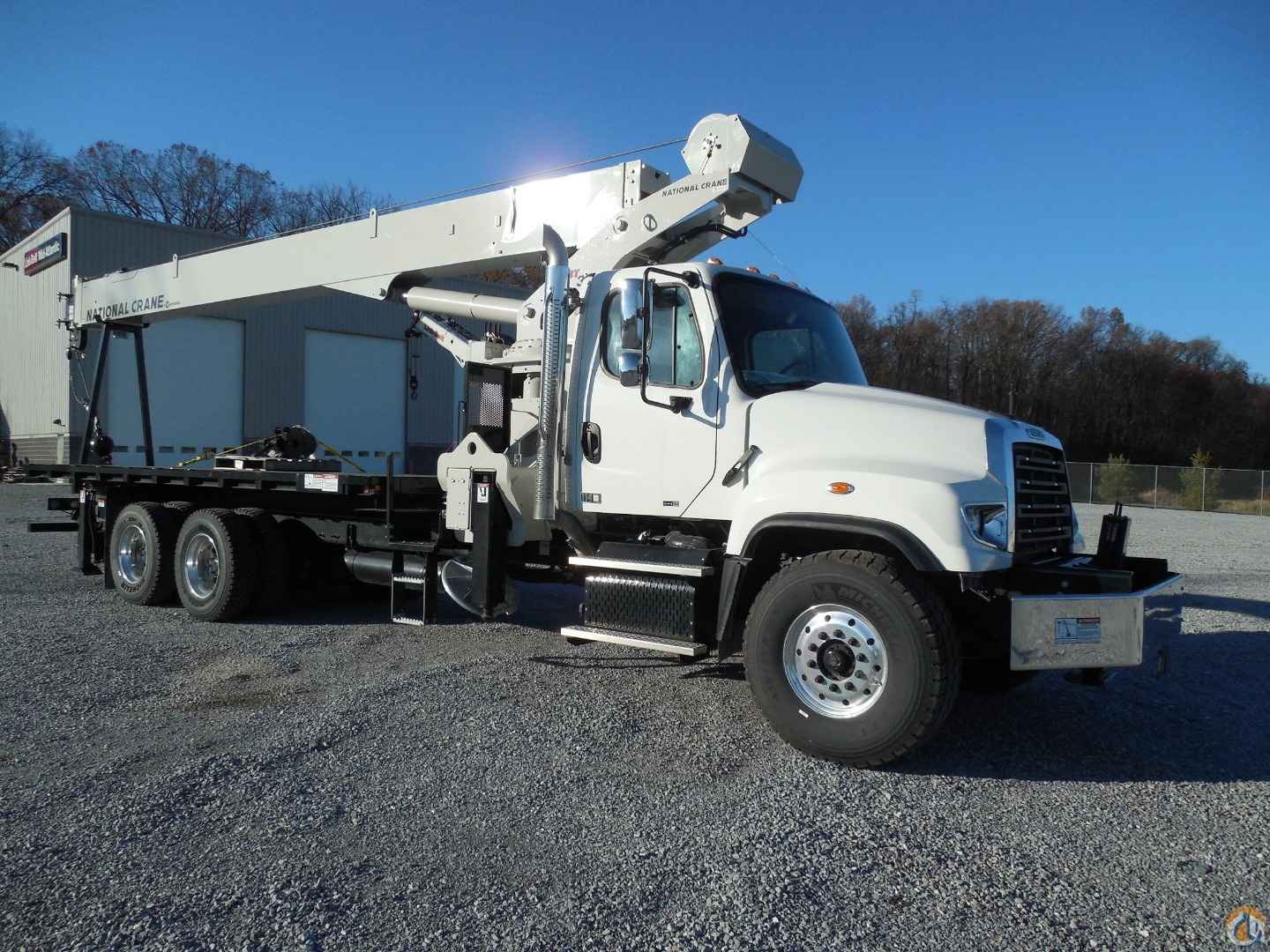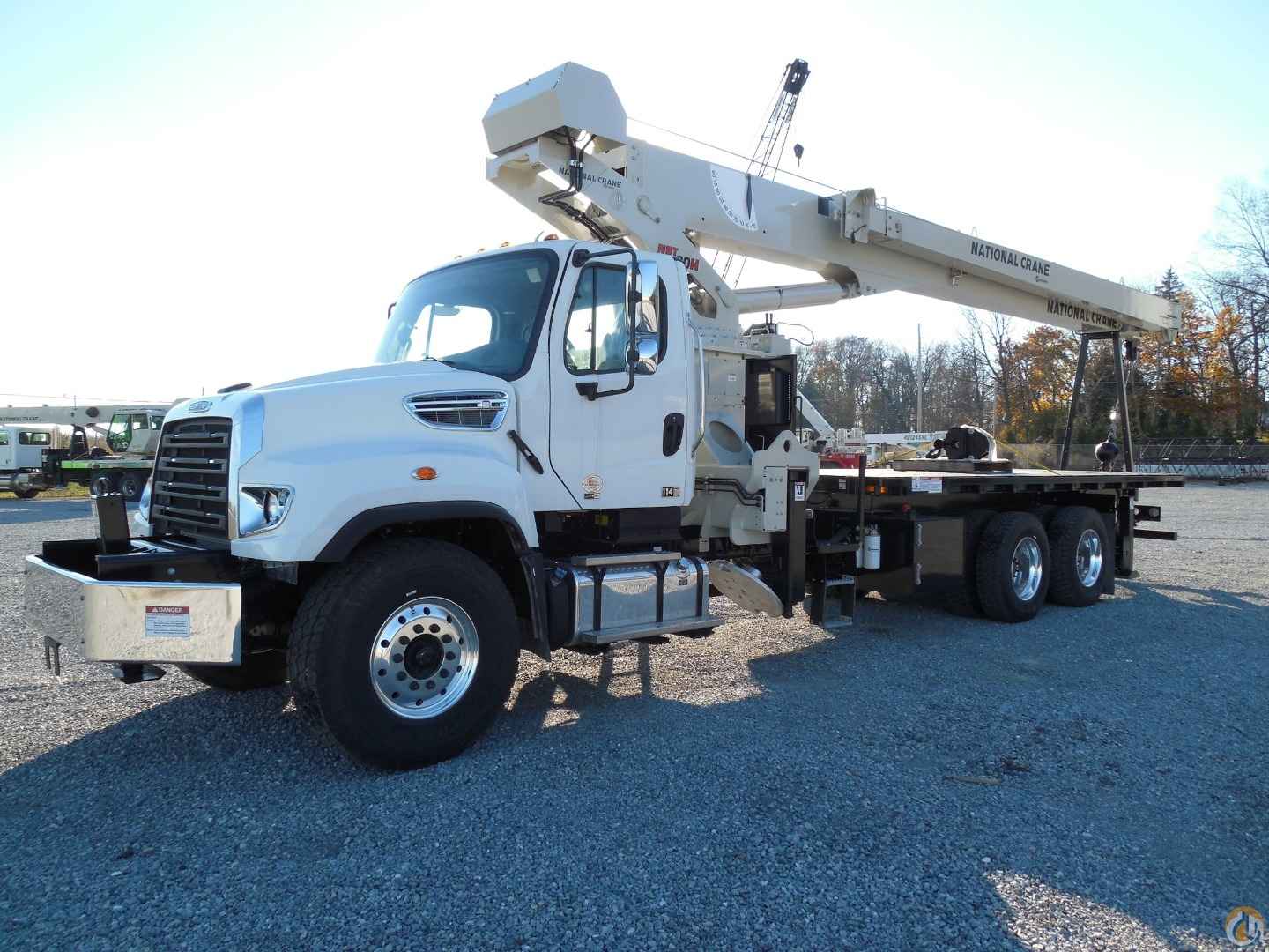 33'-110' 4-section boom, 25'-44' boom extension, 22' torsion box, 2 & 3-part block, removable rear boom rack, 22' super duty wood deck, additional counterweight, counter-clockwise rotation pump, SFO mounting, rear bumper override protection, ICC safety kit, front stabilizer, 2015 Freightliner 114SD chassis, heated mirrors, stationary grille, aluminum wheels.