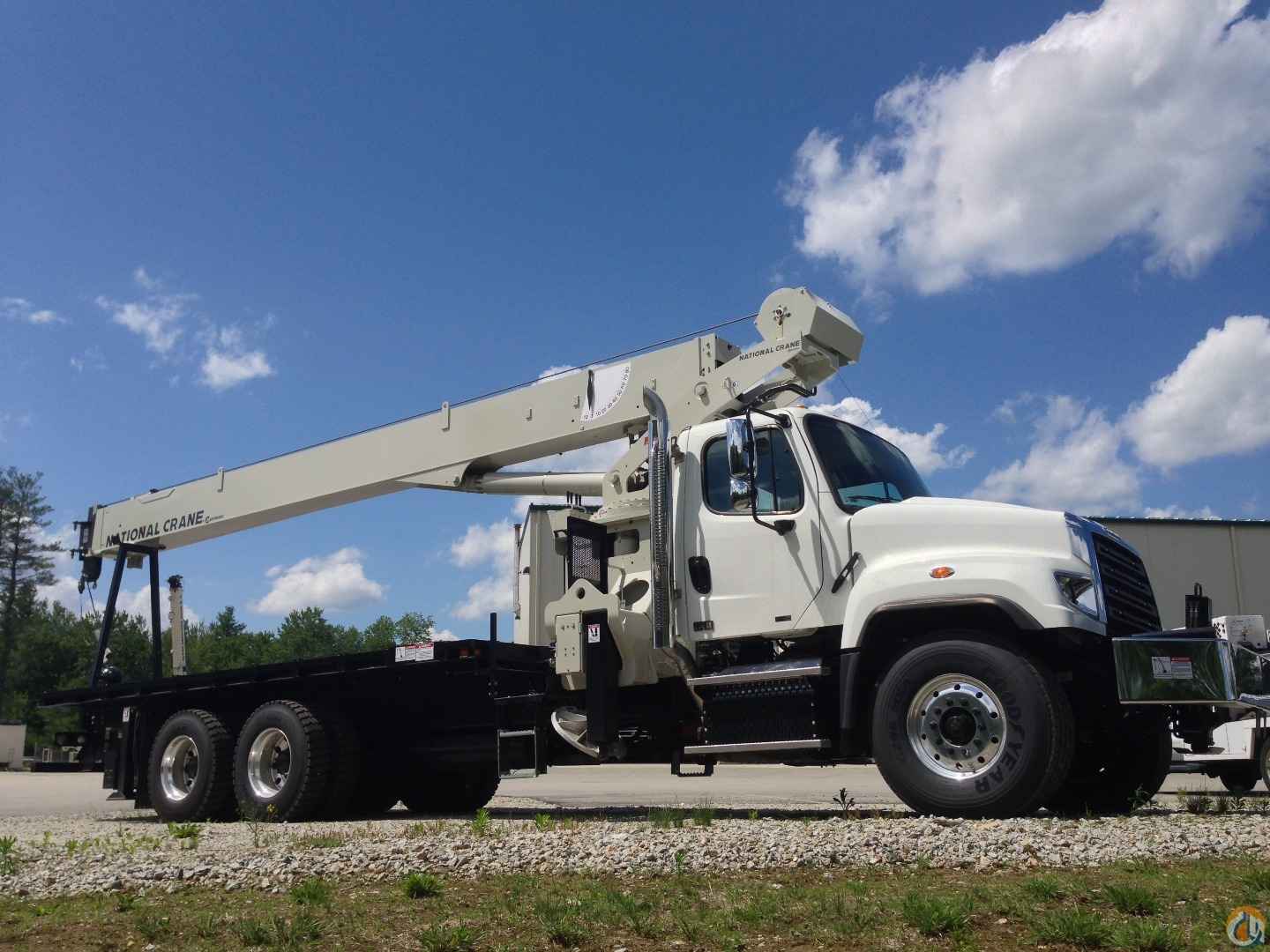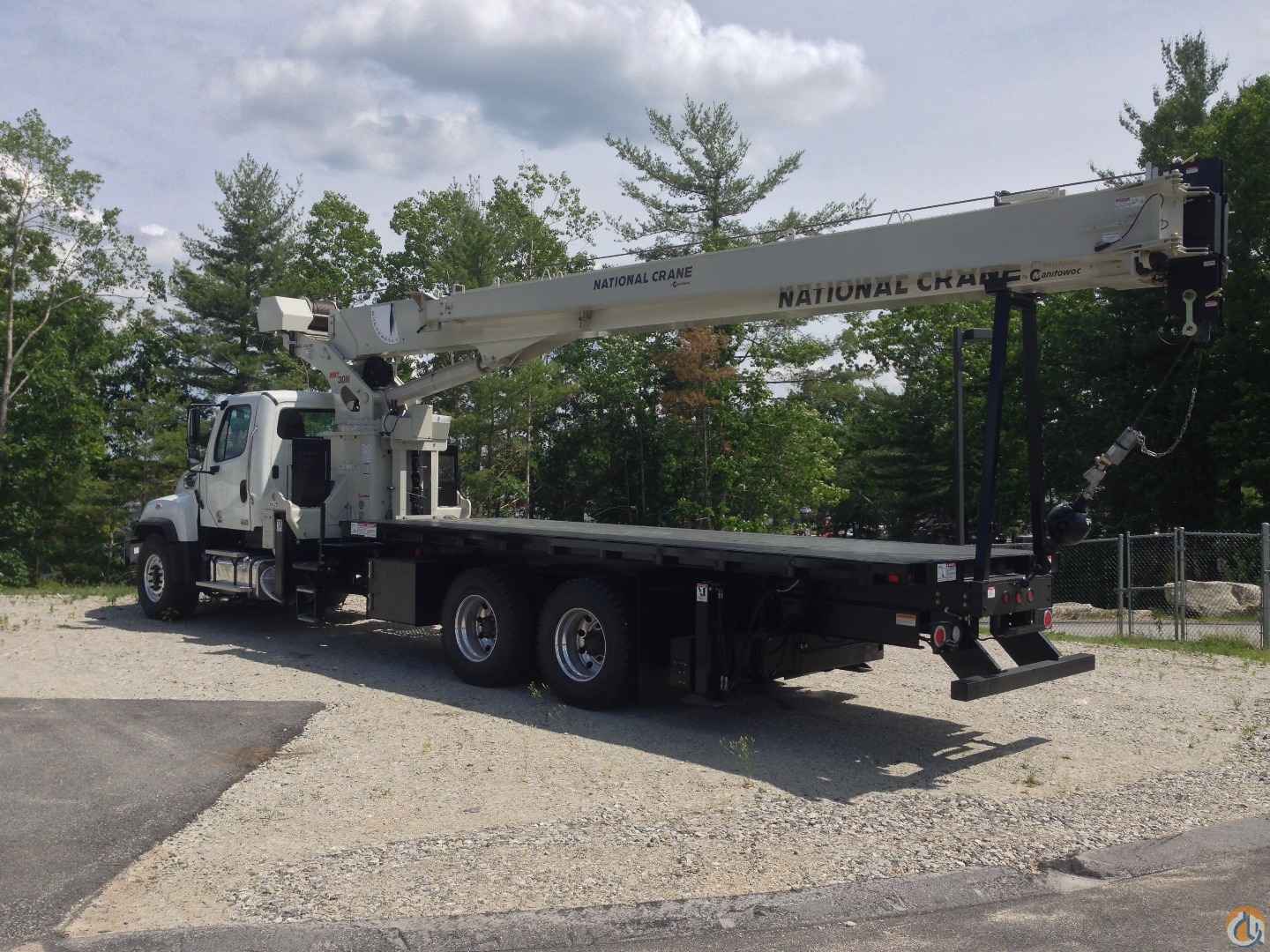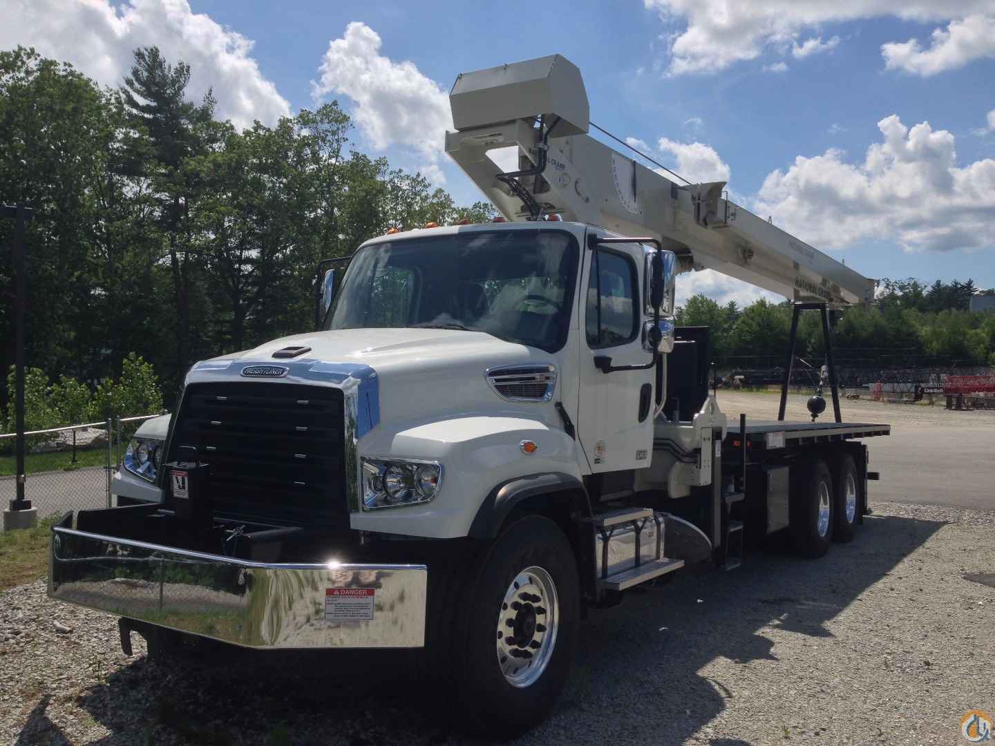 33’-110’ four-section boom, 25’-44’ boom extension, 22’ torsion box, 2 & 3-part line block, removable rear boom rack, 22’ super duty wood bed, counter-clockwise rotation pump, rear bumper override protection, ICC safety kit, front stabilizer, hydraulic oiler cooler, 2015 Freightliner 114SD, 435HP, heated mirrors, aluminum wheels, stationary grille, FA=15,520/RA=34,040, GVW=49,450