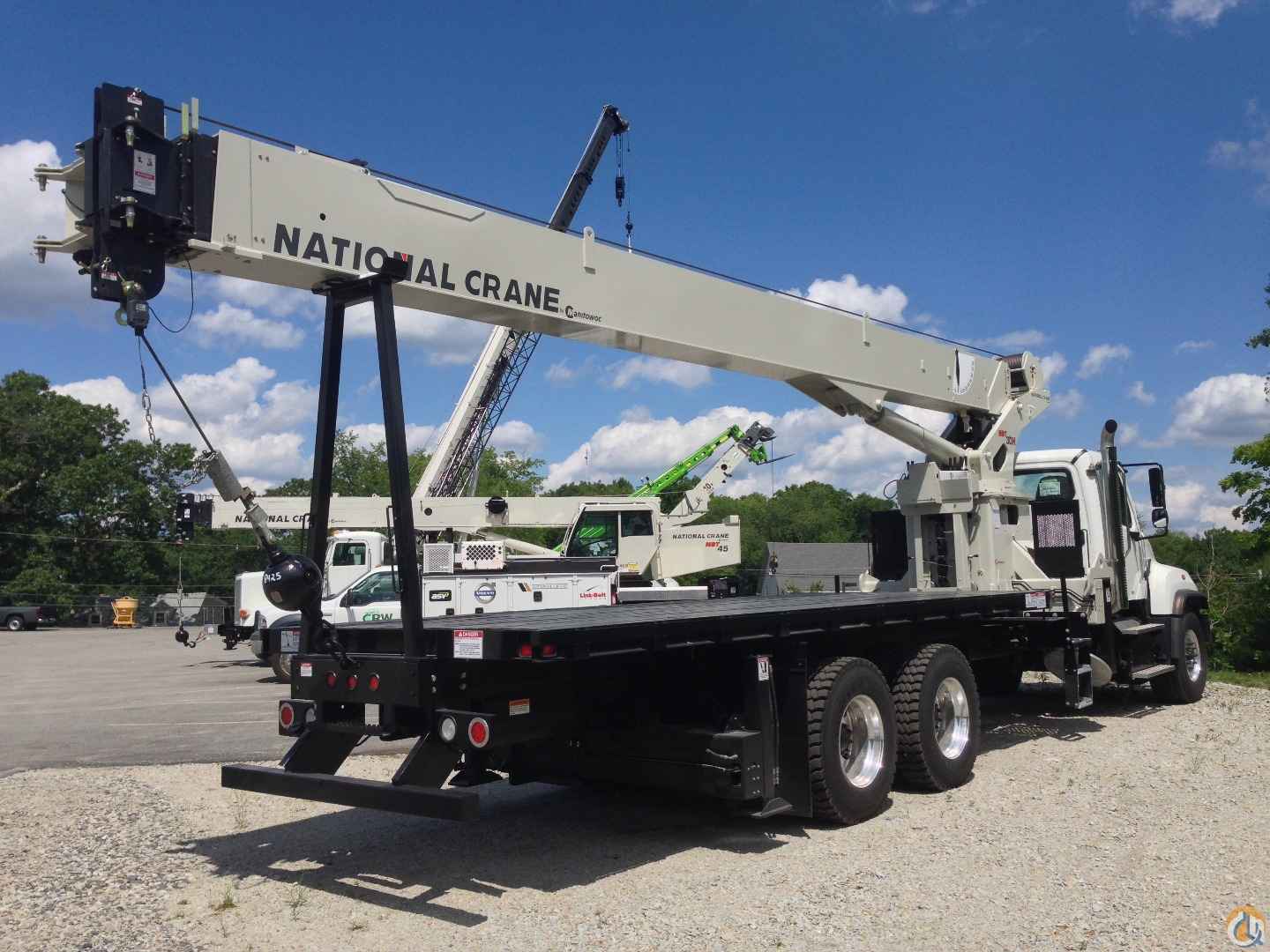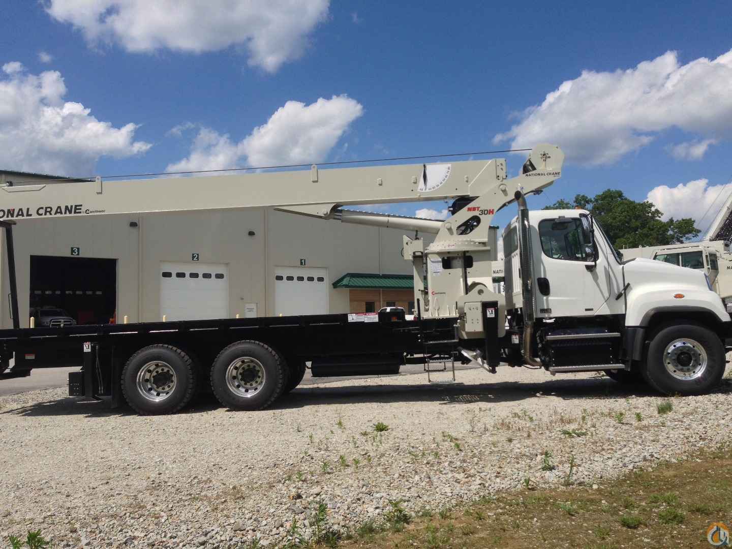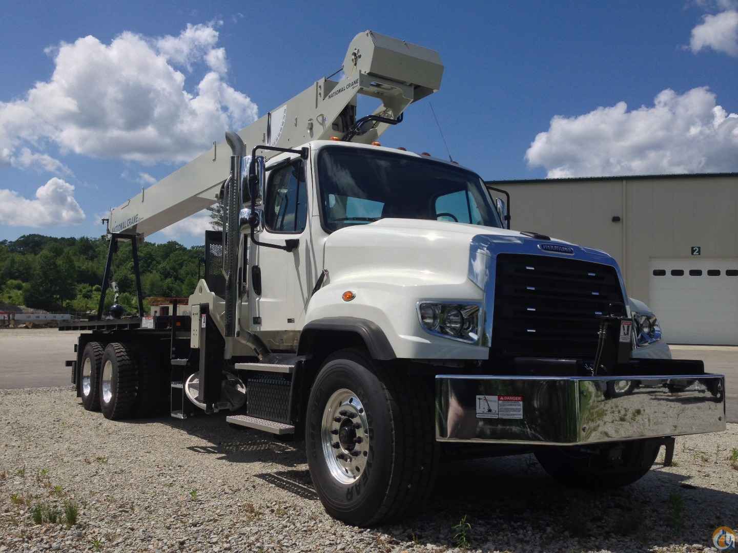 33’-110’ four-section boom, 25’-44’ boom extension, 22’ torsion box, 2 & 3-part line block, removable rear boom rack, 22’ super duty wood bed, counter-clockwise rotation pump, rear bumper override protection, ICC safety kit, front stabilizer, hydraulic oiler cooler, 2015 Freightliner 114SD, 435HP, heated mirrors, aluminum wheels, stationary grille, FA=15,520/RA=34,040, GVW=49,450